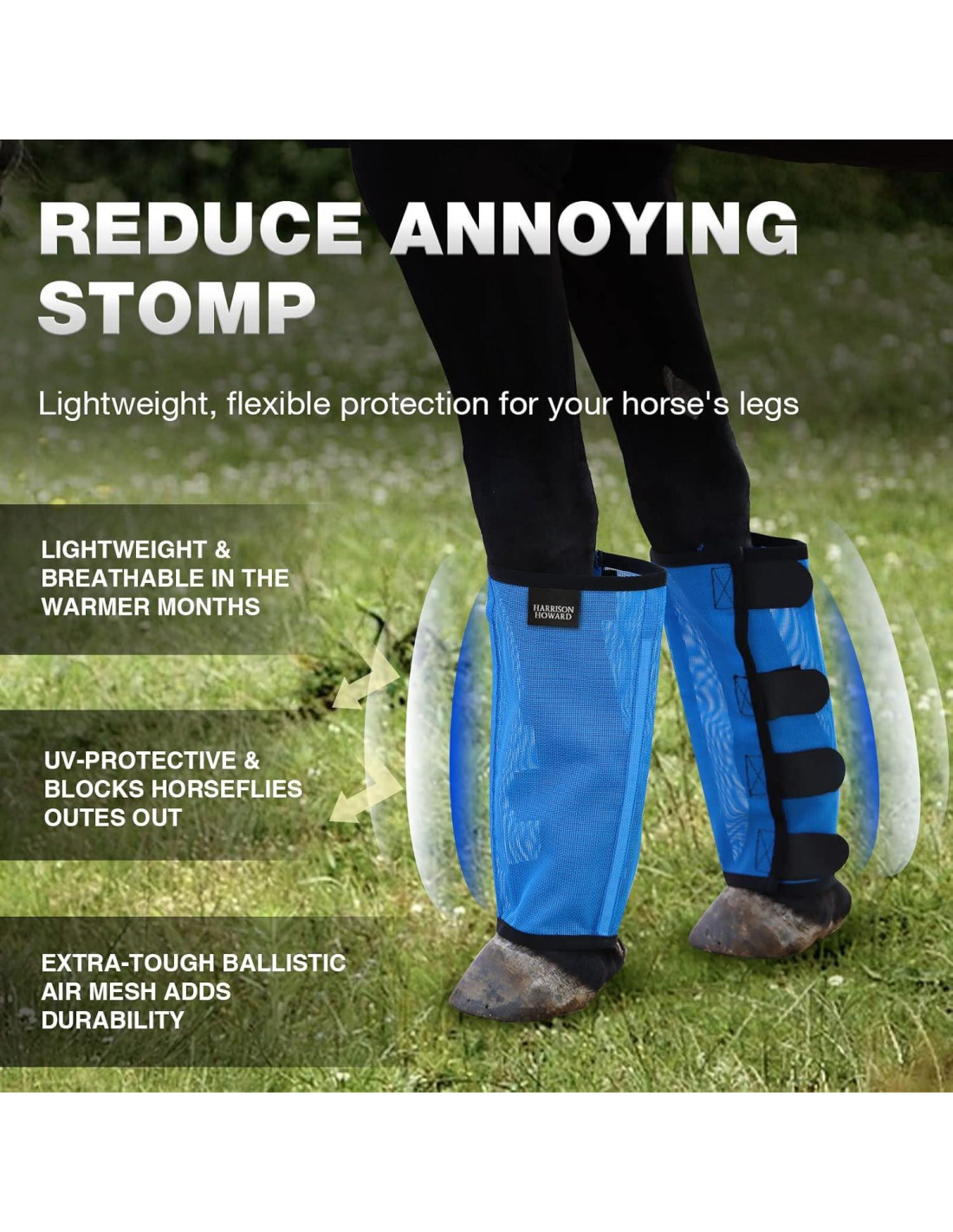 - Reducción de Golpes: Tela de PVC densa forma un escudo resistente para su caballo contra molestias veraniegas, lo que reduce enormemente los molestos golpes. Perfecto para usar en un entorno de pastura.