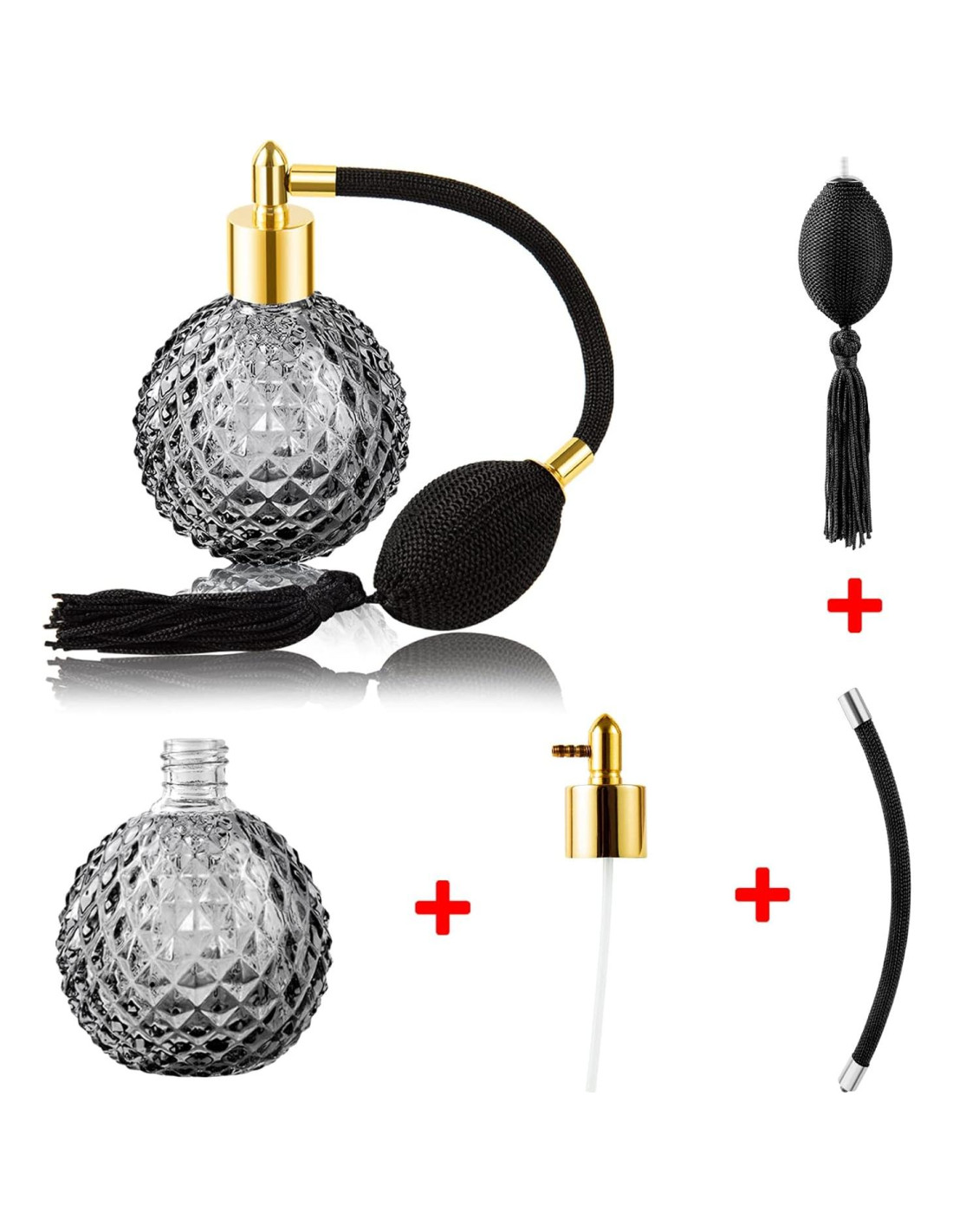 - La botella de spray de perfume vintage tiene un tamaño de 10.4 cm x 6.9 cm, Capacidad es 100 ml.