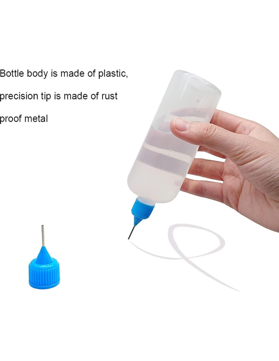- Material: La botella está hecha de plástico blando translúcido, fácil de apretar; la punta de precisión está hecha de metal a prueba de óxido, calibre solo 1 mm, solo aplica para líquidos y pegamentos delgados; tiene una tapa de punta blanda, hará un buen trabajo previniendo que el líquido se seque.
