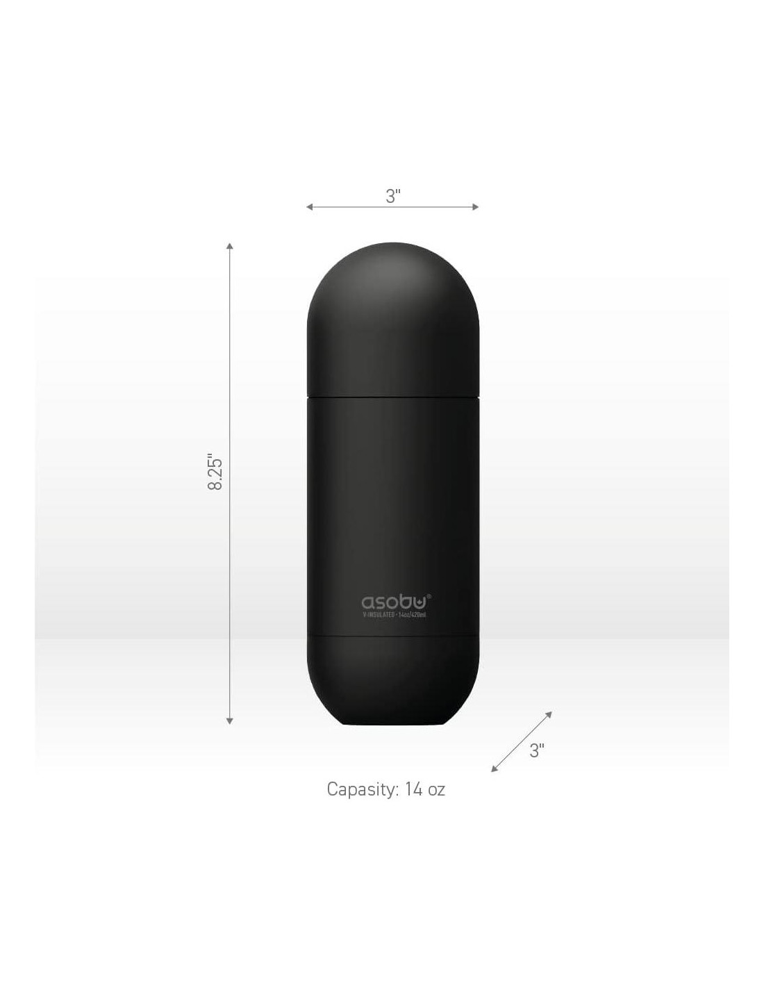 La frescura llevada a un nuevo nivel. La botella Asobu Orb es elegante, con un exterior de tacto suave, compacta y muy práctica. Hecha con acero inoxidable 18/8 con aislamiento de vacío de pared doble y revestimiento de cobre, esta botella mantendrá tu bebida caliente hasta 12 horas y fría durante un día completo. La forma ergonómica de fácil agarre la convierte en un compañero de viaje ideal que se desliza fácilmente en cualquier bolso, mochila o maletín. Con una capacidad de 14 onzas (420 ml) sostiene la cantidad perfecta de café, té o cualquier otra bebida preferida. La tapa también funciona como una taza de servicio individual.