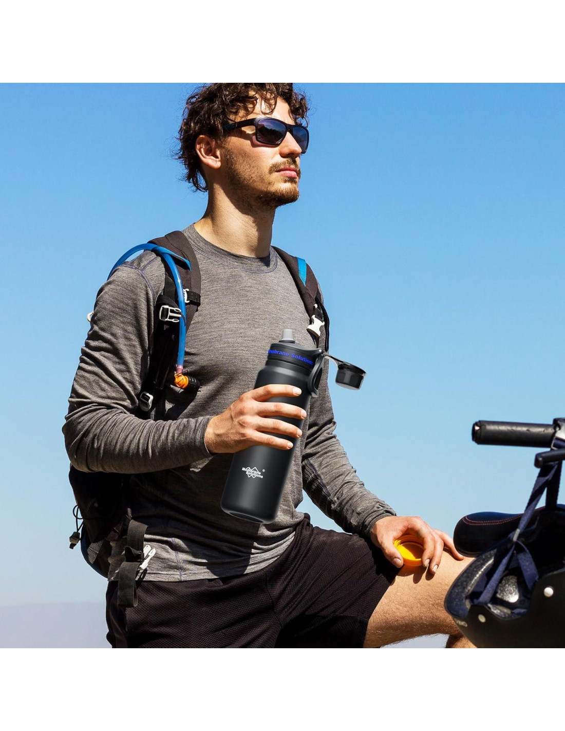 - Gran Capacidad de 32OZ: La botella de agua de tamaño mega de 32oz con filtro contiene suficiente agua para largas caminatas, viajes por carretera o días de trabajo ocupados. El diseño de boca ancha te permite agregar agua fácilmente al aire libre, o llenarla rápidamente desde cualquier grifo.
