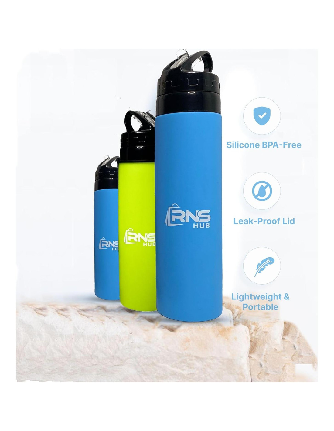 - Diseño Compacto y Portátil: Las botellas de agua plegables RNS Hub para viajar cuentan con un diseño de silicona plegable con fundas, lo que facilita su transporte y almacenamiento, perfecto para viajes, senderismo, gimnasio y salidas a la playa. Esta botella también es un esencial de viaje perfecto para mujeres