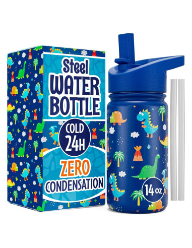 - FÁCIL DE LIMPIAR: Nuestra botella de agua de metal de 14 oz para niños es muy fácil de mantener. Esta botella de agua de acero inoxidable para niños es apta para lavavajillas. Su recubrimiento duradero asegura un brillo y limpieza duraderos.