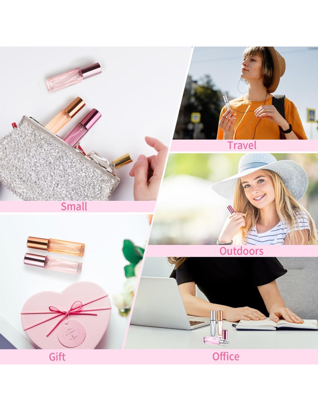 - Botella de Perfume de Viaje de Tamaño de Bolsillo La botella de perfume de vidrio de 10ml tiene una capacidad adecuada y un tamaño inteligente, portátil y rellenable, las botellas de perfume de tamaño de viaje son muy adecuadas para llevar a diario, convenientes y fáciles de usar.