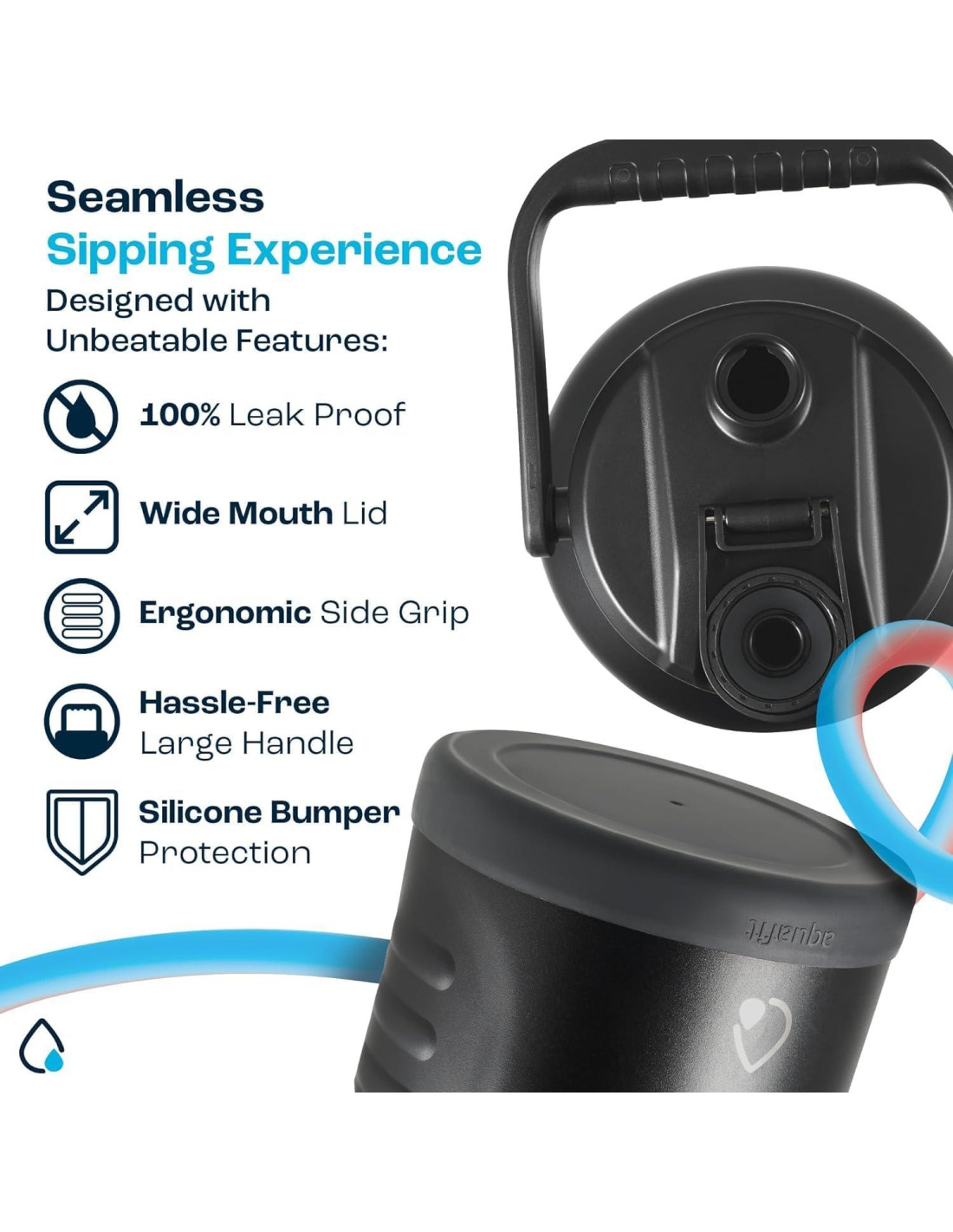 - Conveniencia a Prueba de Fugas Redefinida - Estableciendo un nuevo estándar de facilidad, nuestras botellas de agua de boca ancha a prueba de fugas son el compañero perfecto para la aventura. Nuestro vaso de agua a prueba de fugas también cuenta con prácticos agarres laterales y un parachoques de silicona protector.