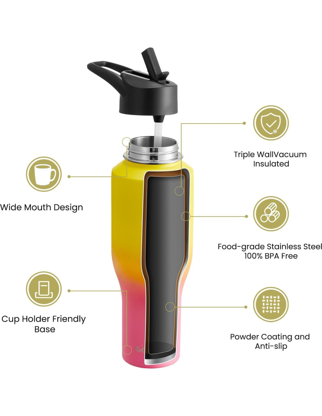 - LISTA DE PAQUETE: Botella de Agua Aislada, 2 tapas (tapa de popote y tapa de pitorro), 2 popotes, 1 cepillo para popote y servicio al cliente profesional.