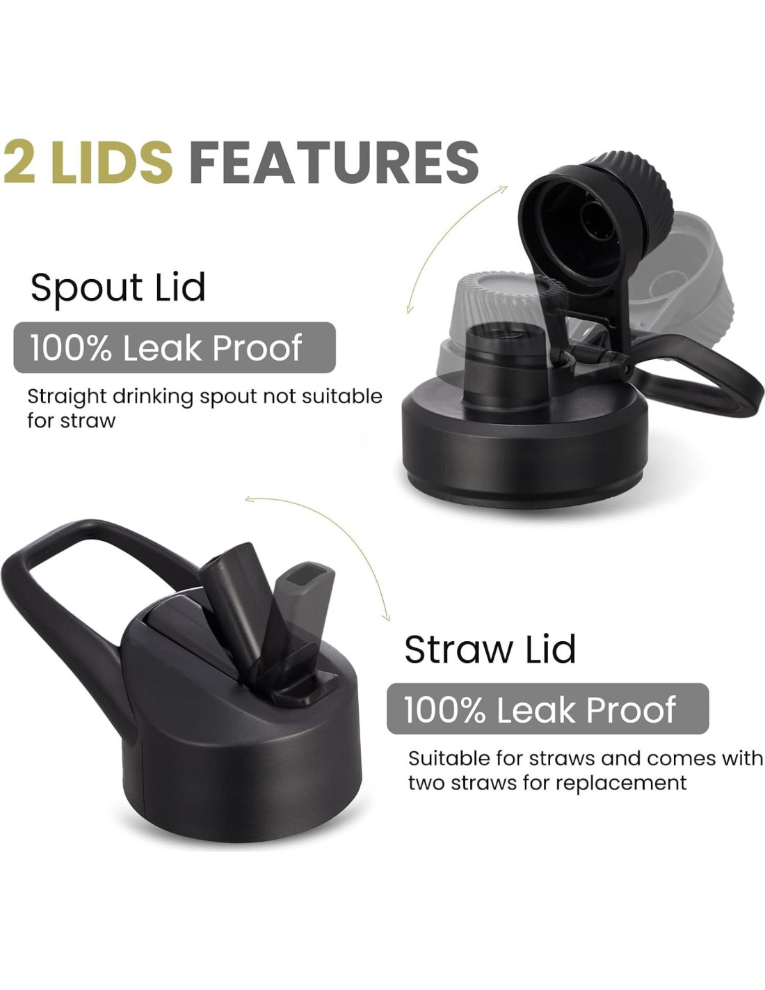 - BOTELLA DE AGUA CON TAPAS DE POPOTE Y A PRUEBA DE FUGAS: Nuestra botella de agua deportiva está equipada con dos tapas individuales (tapa de popote, tapa de pitorro) que son completamente a prueba de fugas y están diseñadas para beber sin esfuerzo.