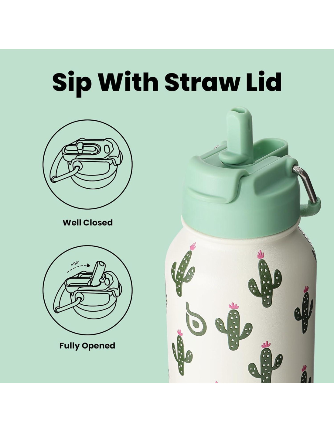 - [Diseño de Tapa de Doble Uso]: Esta botella de agua de acero inoxidable tiene una tapa a prueba de fugas de doble uso, puedes beber a través de la tapa de popote directamente y girar la tapa para verter el agua. Esta botella de agua con popote está equipada con un asa para que puedas llevarla fácilmente