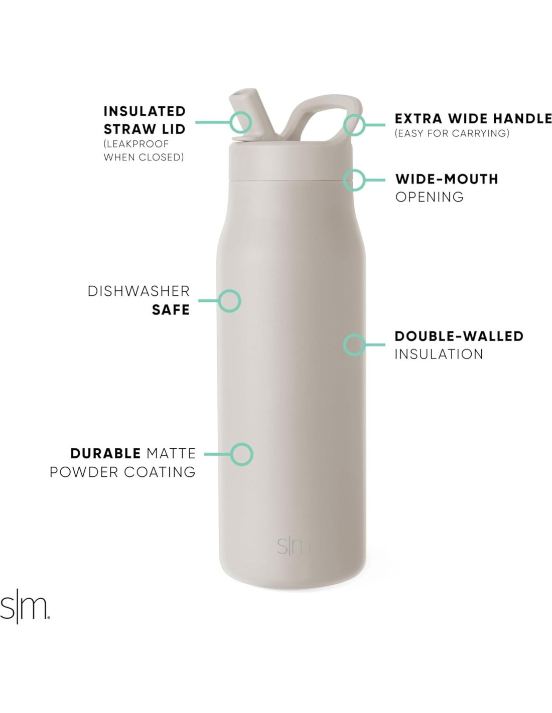 La Botella de Agua Mesa es la línea más nueva de botellas de agua de Simple Modern. Este producto fue diseñado intencionalmente con una abertura de boca ancha, perfecta para agregar hielo y facilitar la limpieza. La botella Mesa tiene rosca interna para proporcionar un aislamiento premium. La botella está hecha de aislamiento de vacío de doble pared, manteniendo tu bebida fría durante horas. Viene con una tapa de popote que es a prueba de fugas y tiene un gran asa para llevar. Puedes meterla en el lavavajillas para una fácil limpieza. Las tamaños de 16oz (473ml) y 24oz (710ml) son amigables con los portavasos y caben en la funda de tu mochila.