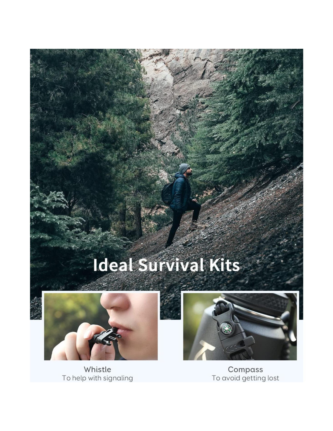 - [Accesorios de Función Completa] : Puedes beber a través de la tapa de paja abatible y beber como un pez a través de la tapa de pico. Cada tapa viene con un anillo de sellado de goma para garantizar 100% a prueba de fugas. El asa funcional de paracord es portátil. La brújula compacta y el silbato son kits de supervivencia ideales para expediciones en la naturaleza. El mosquetón ayuda a sujetar el vaso en cualquier lugar, perfecto para caminatas.
