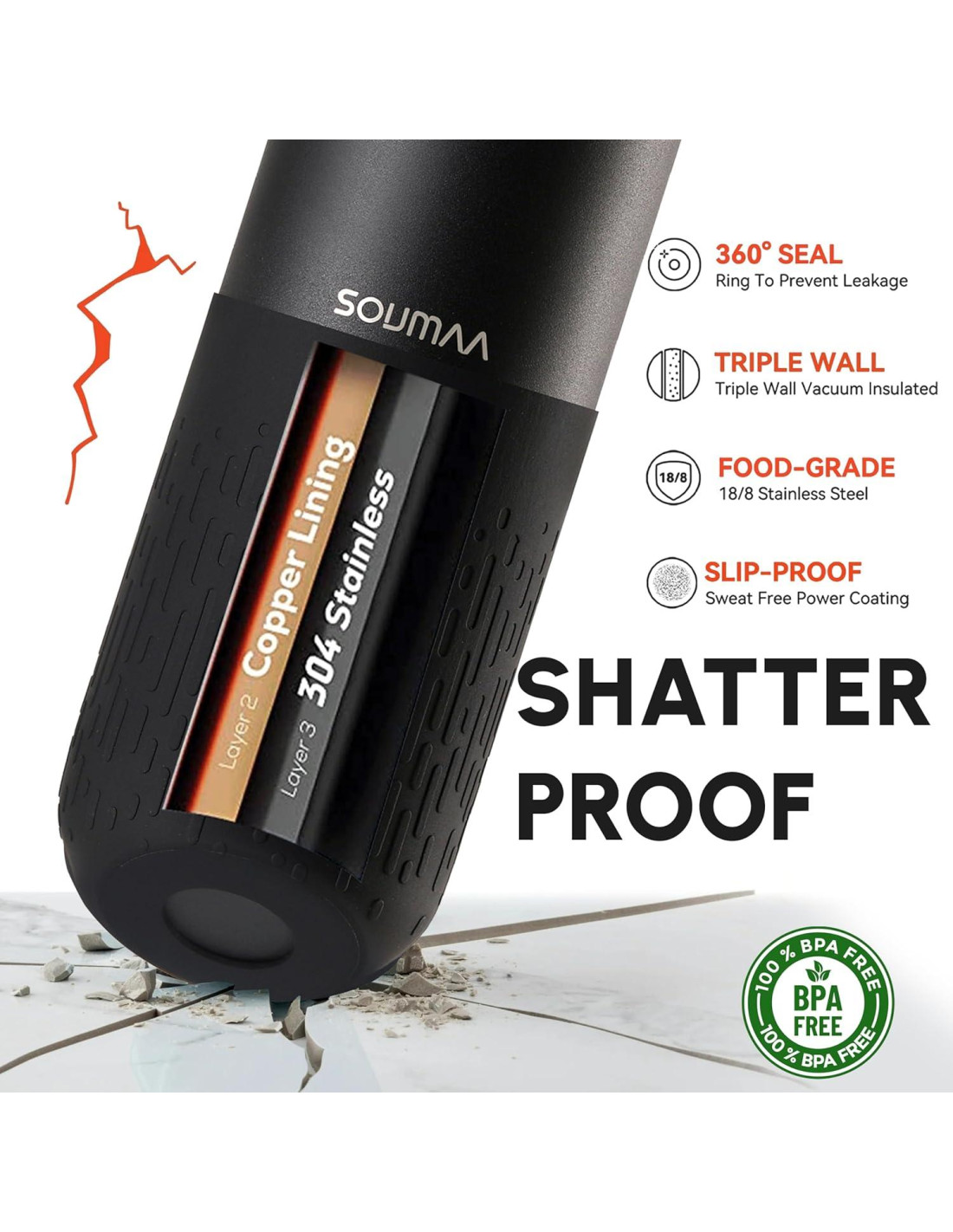- Construcción de Acero Inoxidable de Grado Premium: Fabricada con acero inoxidable SUS 304 de alta calidad, esta botella es resistente a la corrosión, duradera y diseñada para uso diario. La botella de agua aislada de acero inoxidable tiene un exterior recubierto en polvo que asegura un agarre antideslizante y un acabado duradero, haciéndola perfecta para estilos de vida activos.