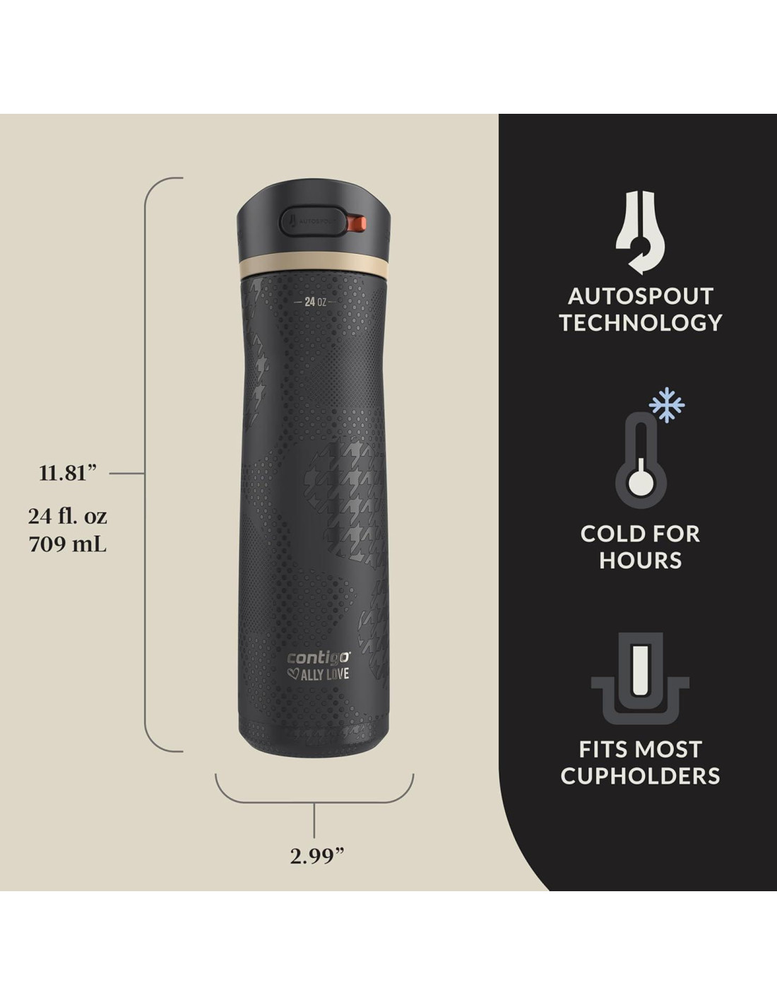 ¡Hola! Ally Love aquí. Como Oficial Jefe de Hidratación de Contigo, estoy emocionada de ayudarte a empujar, beber y presionar tu camino hacia una mejor hidratación con el Ashland Chill 2.0. Esta Botella de Agua de Acero Inoxidable AUTOSPOUT cuenta con tecnología de botón de presión para beber con una mano, ya sea que estés en la caminadora o en tu teléfono. Su cuerpo de acero inoxidable con aislamiento al vacío de doble pared mantiene las bebidas frías por hasta 24 horas, así que te mantendrás fresco sin importar lo que el día te depare. La tapa a prueba de fugas significa menos desorden en tu bolso de trabajo, bolso de gimnasio, tote o portavasos del auto, y la cubierta del pico protege contra la suciedad y la mugre. Llevarla es fácil con el asa integrada que se levanta y se coloca de forma segura, mientras que la pajilla emergente en ángulo se ajusta de manera segura en la tapa entre sorbos. La limpieza es muy sencilla gracias a una tapa apta para lavavajillas en la rejilla superior y un cuerpo lavable a mano. ¡Espero que te encante tanto como a mí!