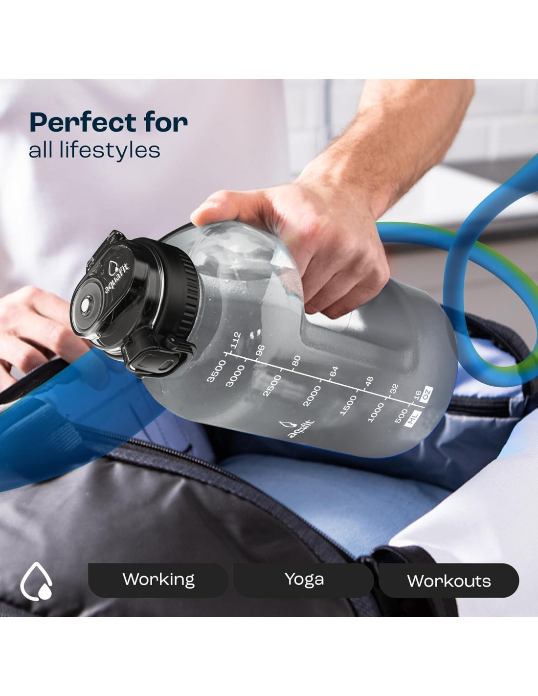 Conoce la Botella de Agua de 1 Galón de Aquafit: ¡Tu compañero perfecto para un estilo de vida activo! Diseñada para entusiastas del fitness, aventureros y atletas, su avanzada aislamiento asegura hidratación en movimiento. Ya sea un día de trabajo exigente, una caminata aventurera o una salida familiar encantadora, Aquafit te mantiene refrescado todo el día. ¡Abraza la excelencia en hidratación! Desde entrenamientos hasta días de trabajo, las botellas Aquafit están diseñadas para mantenerte motivado, refrescado y siempre listo para salir. Fabricadas sin BPA y a prueba de fugas, las botellas Aquafit están construidas para rendir y mantenerse al día con tu estilo de vida activo. Lleva tu hidratación a cualquier lugar con las botellas Aquafit, diseñadas para conveniencia, durabilidad y estilos de vida activos.