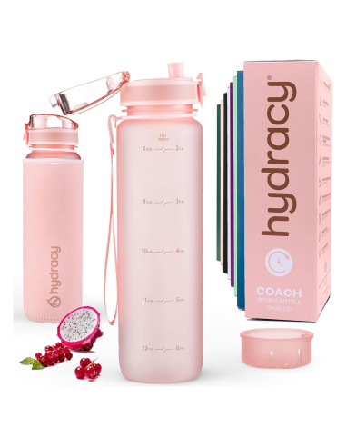 - DISEÑO INTELIGENTE Equipado con una correa de transporte desmontable, tapa abatible a prueba de derrames, boca ancha conveniente y un colador de Infusión de Frutas, tu elegante botella de agua Hydracy tiene todo lo que querías y más! ¡También viene con un eBook de 27 recetas de agua detox infusionada con frutas como bono!