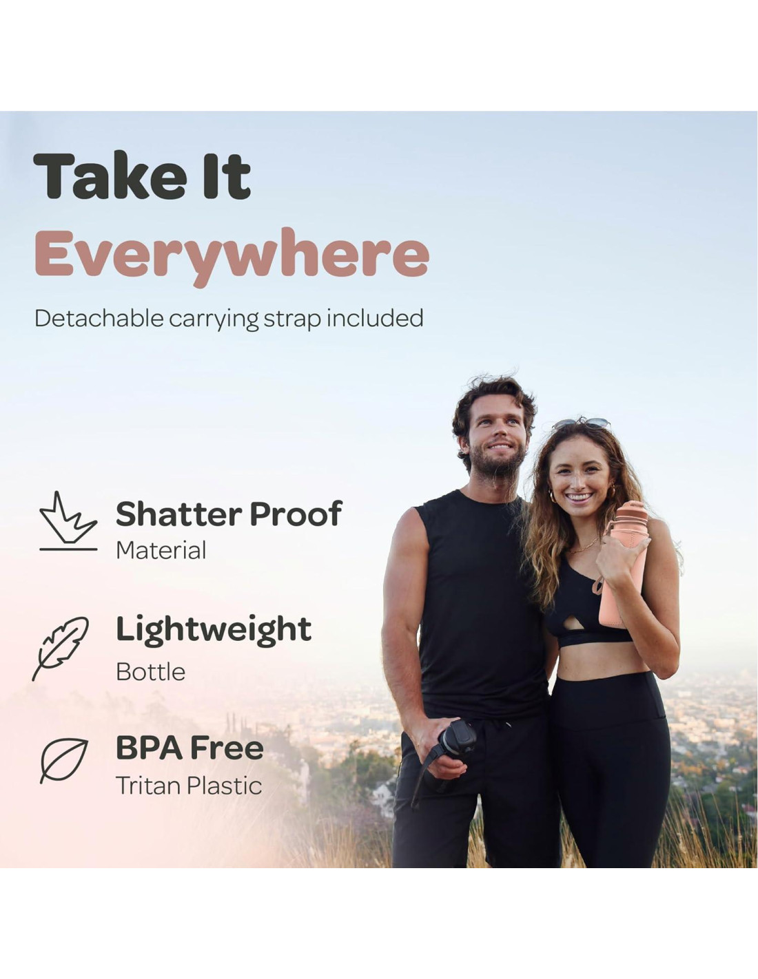 - SEGURO, NO TÓXICO, DURADERO Esta botella de agua irrompible, ligera y reutilizable está hecha de plástico Tritan 100% Libre de BPA. ¡Puedes relajarte y disfrutar de tu agua libre de productos químicos dañinos, sabor a plástico o mal olor!