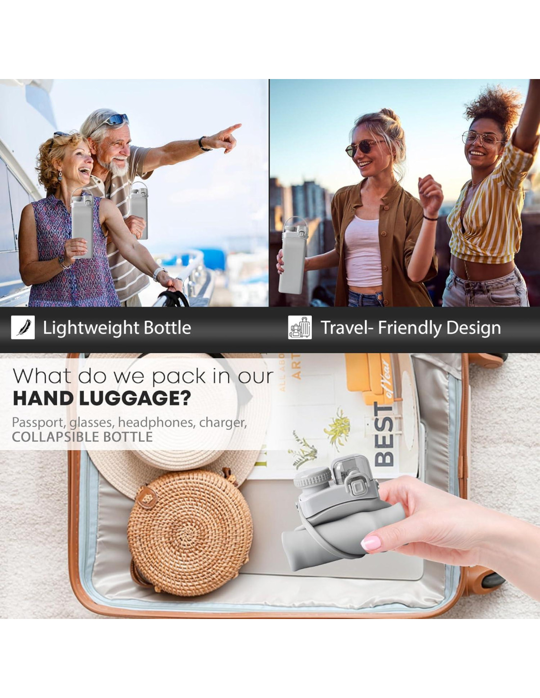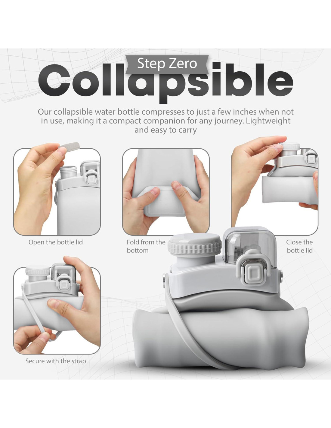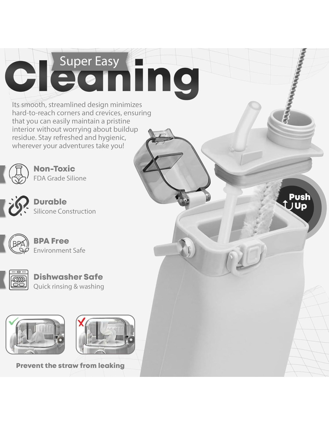 - Tecnología Patente a Prueba de Fugas: Con una tapa única y bien sellada, nuestra botella de agua plegable asegura una experiencia confiable a prueba de fugas. Disfruta de la tranquilidad sabiendo que tus pertenencias se mantendrán secas, sin importar a dónde te lleven tus aventuras.