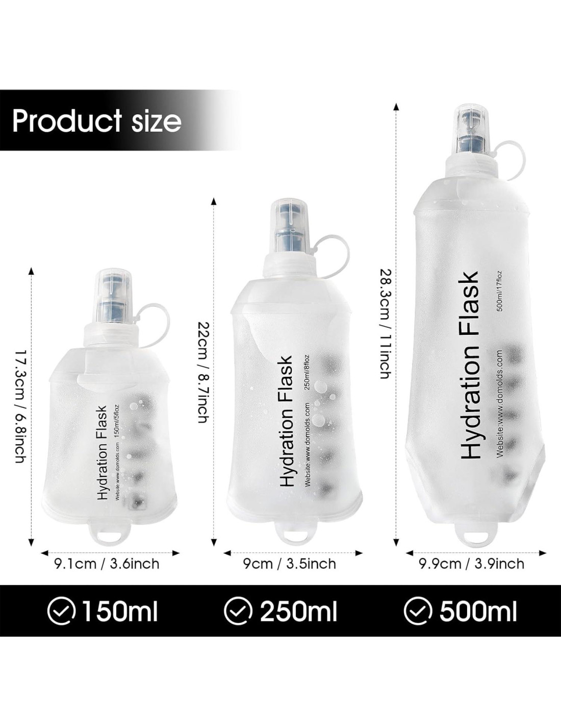 - Multi-Capacidad: Nuestra botella de agua suave está disponible en 3 capacidades, 150ml (5 oz), 250ml (8.45 oz) y 500ml (16.9 oz), por lo que puedes elegir libremente según tus necesidades.