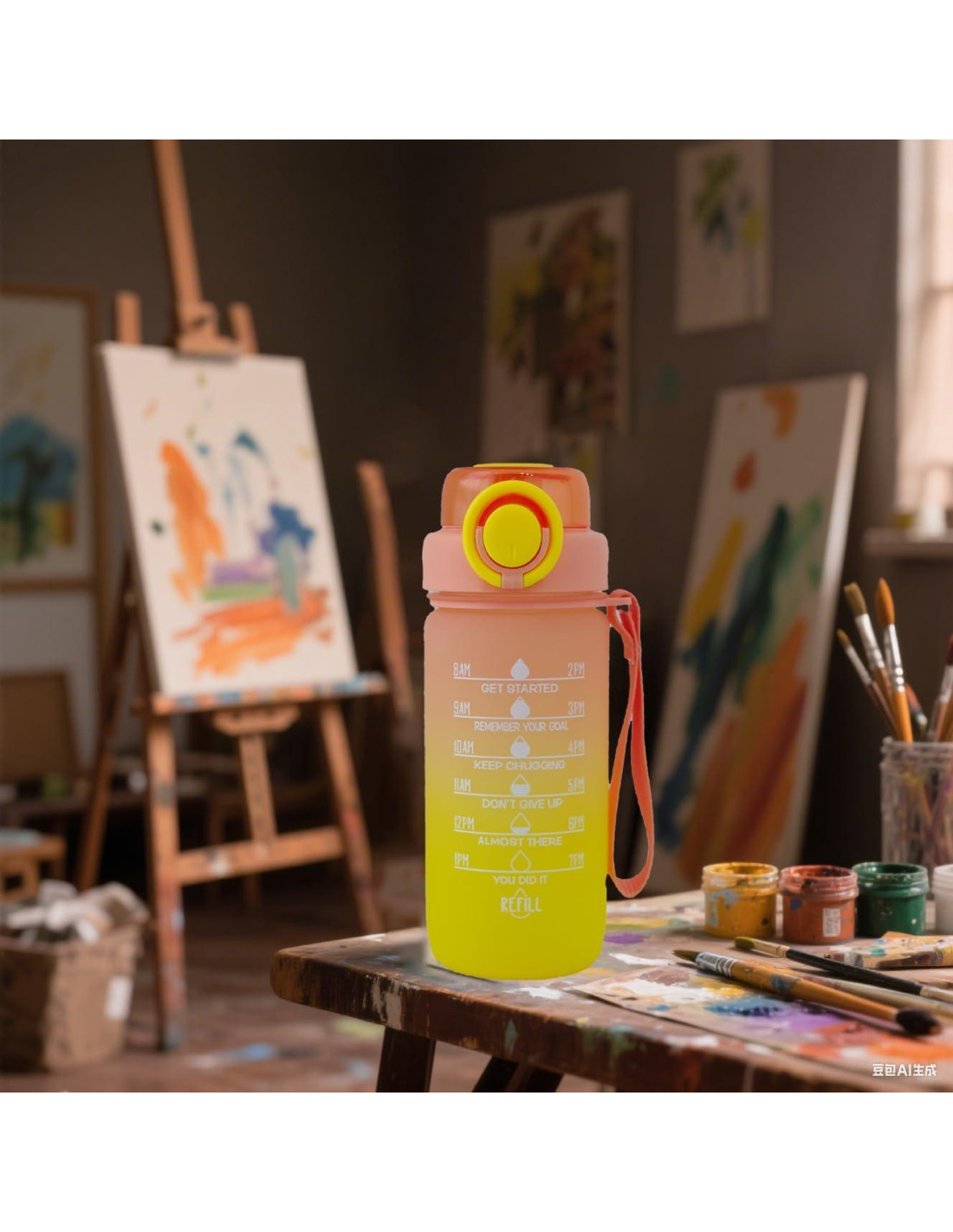 - Marcadores de Tiempo y Citas Motivacionales: ¡Nunca olvides beber agua de nuevo! Cada botella cuenta con claros marcadores de tiempo y citas inspiradoras para recordarte hidratarte a lo largo del día. Es como tener un entrenador personal de hidratación justo en tu mano, manteniéndote motivado para alcanzar tus objetivos diarios de ingesta de agua.