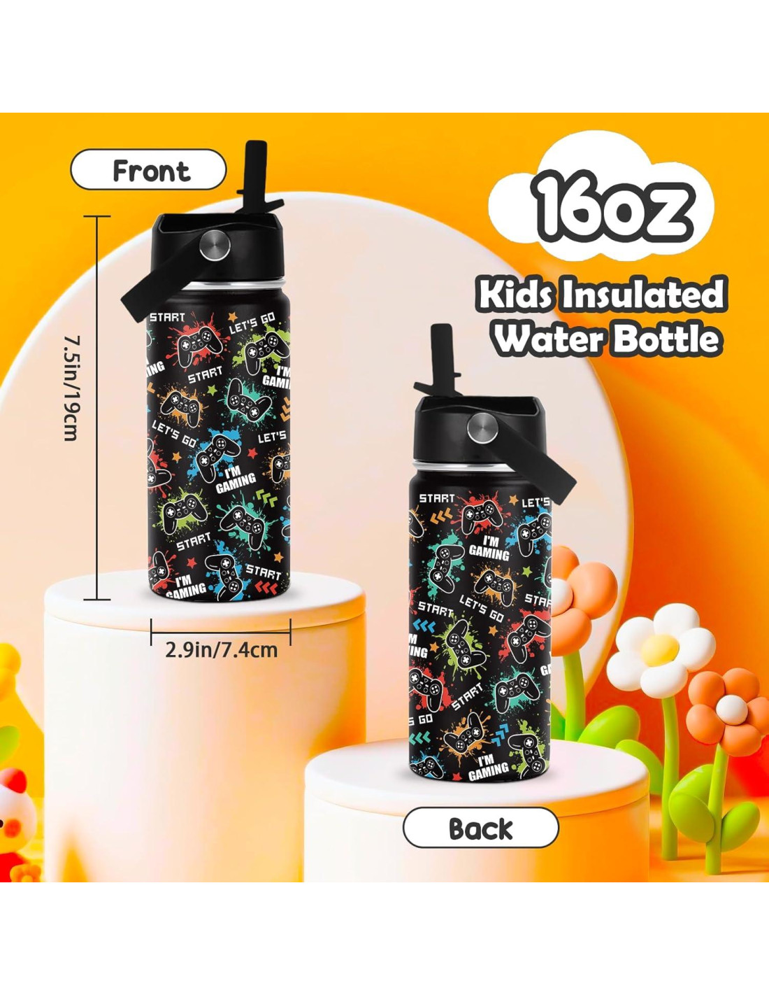 - Seguridad y Durabilidad: La botella de agua para niños de 16oz está hecha de acero inoxidable 18/8 inodoro; la tapa y la pajilla son libres de BPA, el diseño de la botella de agua con su propia pajilla previene que el hielo corte la boca de su hijo y cause lesiones, proporcionando un ambiente de bebida seguro y saludable para su hijo
