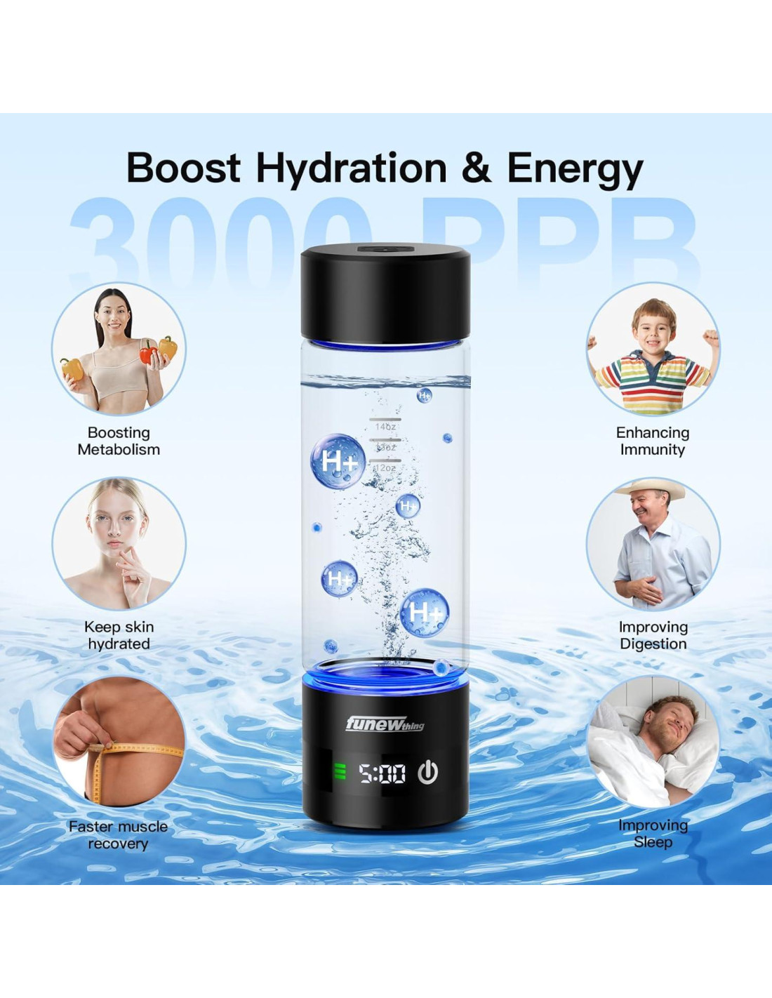 - Regalo Enfocado en la Salud: Mantente energizado, reduce el estrés oxidativo y apoya el metabolismo con agua de hidrógeno diaria. La Botella de Agua de Hidrógeno funewthing es un regalo de bienestar considerado para familiares y amigos. Nota: Usa solo agua electrolizable (evita jugo, leche, té, agua destilada o purificada).