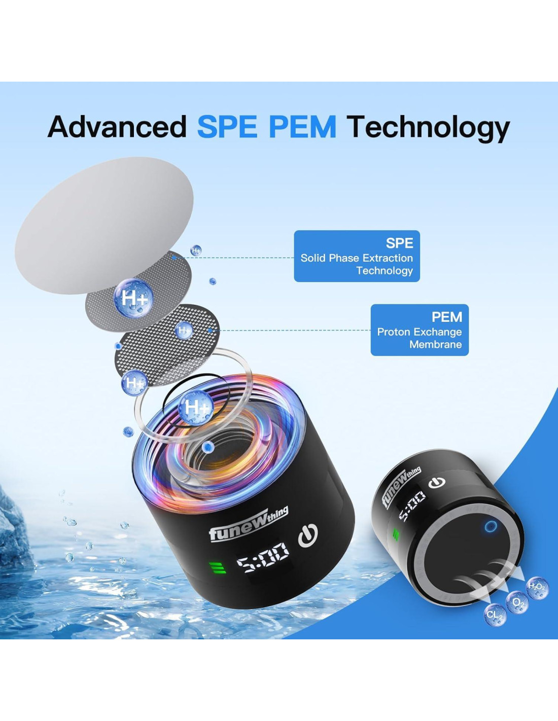 - Hidrógeno en 5 Minutos: Experimenta una hidratación mejorada con la Botella de Agua de Hidrógeno funewthing, ahora con una pantalla inteligente que muestra el nivel de batería y la cuenta regresiva de producción de hidrógeno. Utilizando tecnología avanzada de electrolisis SPE/PEM, genera hasta 3000ppb (3ppm) de hidrógeno en solo 5 minutos. Los orificios de ventilación en la base expulsan oxígeno, cloro y otros gases, asegurando agua rica en hidrógeno pura en cualquier momento y lugar.