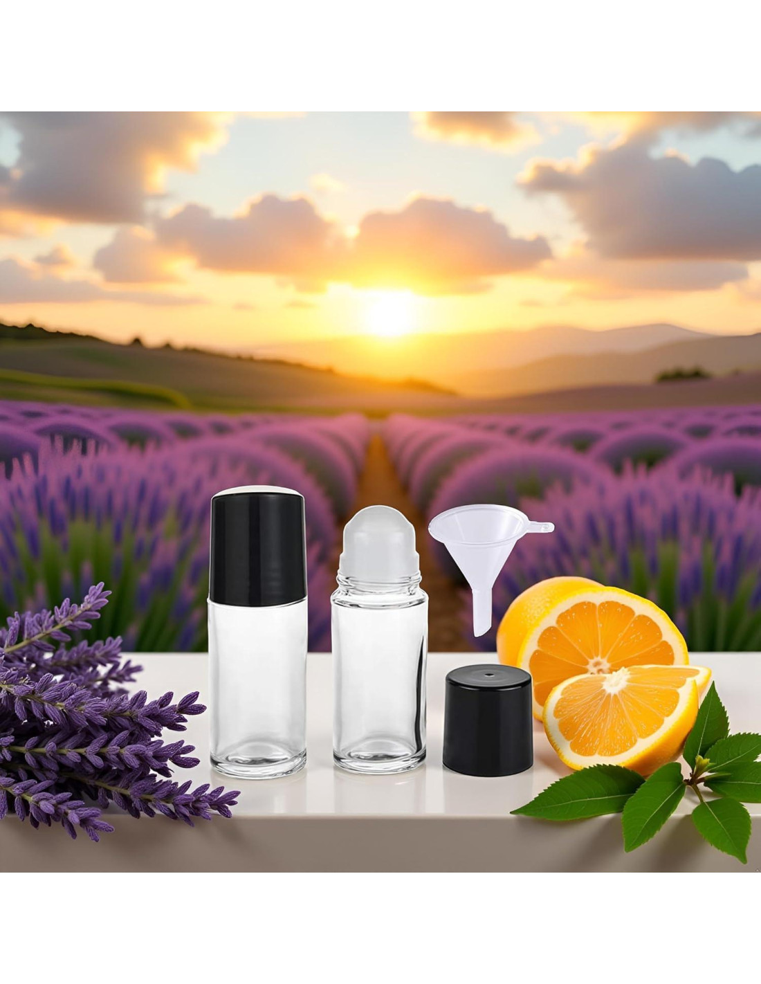 2Pcs Botellas de Vidrio Esencial de Aceite Roller Vacías Claras Negras con Botellas Roll-on Reutilizables y Herramientas y Accesorios, Botellas Roll-on (sin embudo)