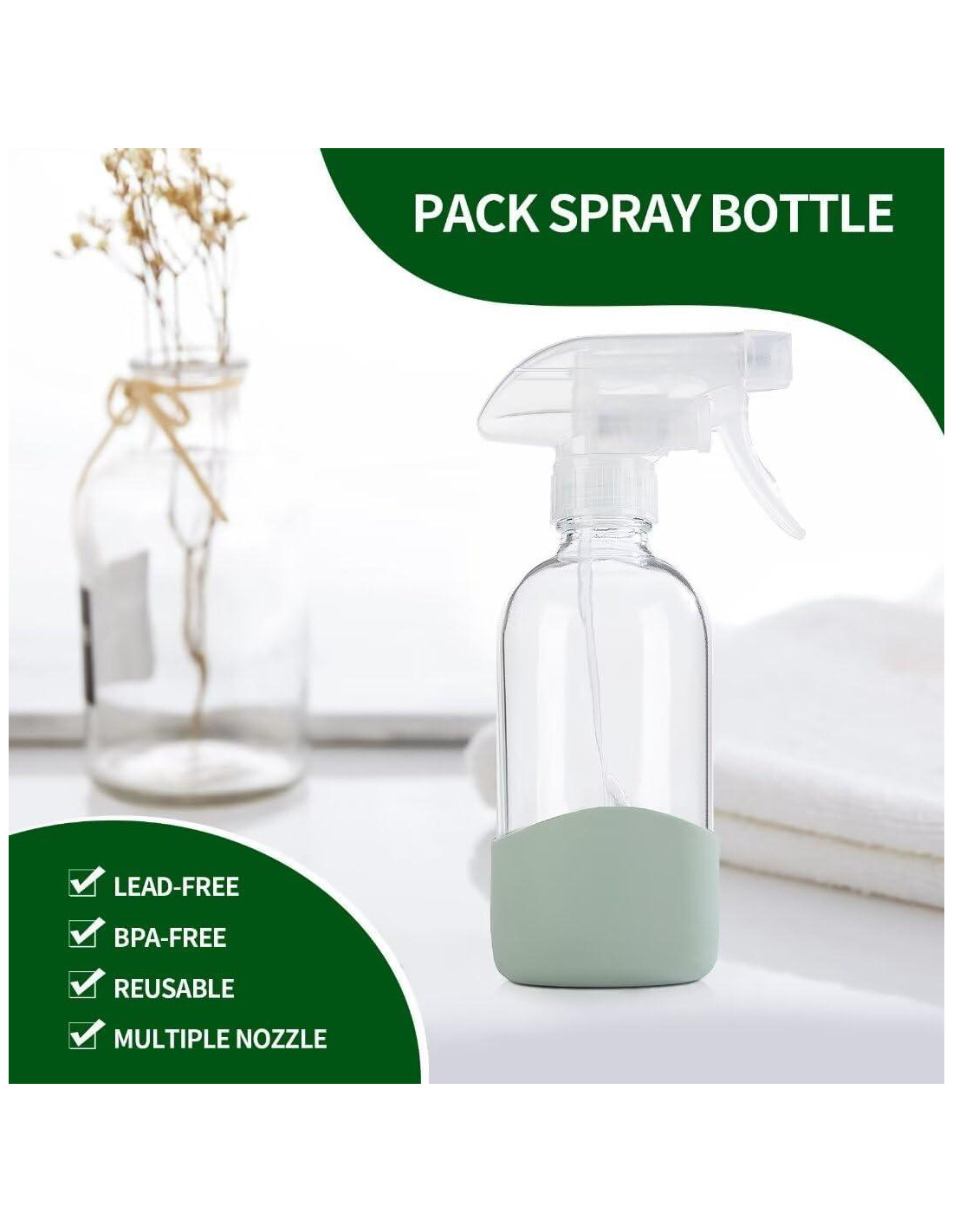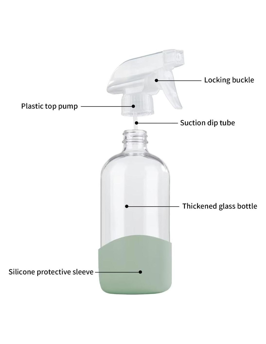 - Protección ambiental y durabilidad: La boquilla de spray está hecha de material nuevo PP ecológico, sin impurezas. La cubierta protectora de silicona se agrega a la parte inferior de la botella para ofrecerle una capa adicional de protección y hacerla más duradera.