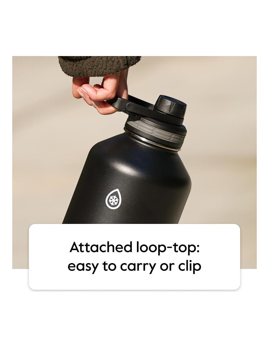 - Botella con Control de Temperatura: La botella de agua está diseñada con tecnología Temp-Lock para mantener el agua fría y las bebidas frías por hasta 24 horas