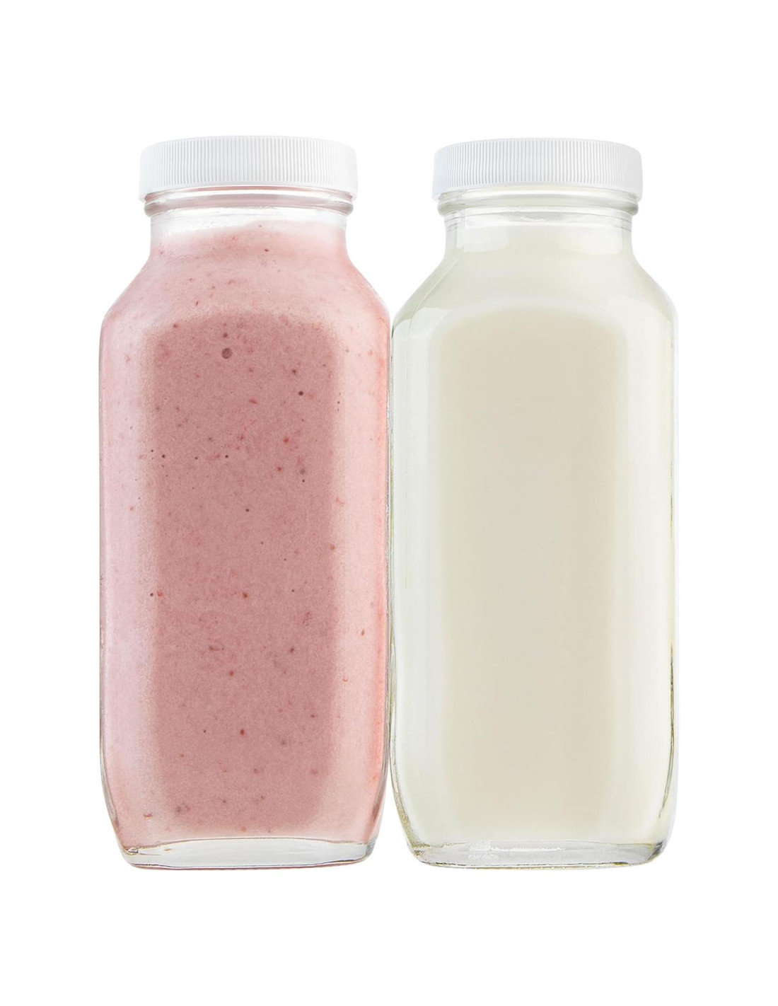 Este conjunto de cuatro botellas de vidrio cuadradas de 16oz es una excelente manera de almacenar leche, jugo, batidos y más mientras mantienes tu refrigerador organizado. El vidrio grueso mantiene las bebidas frescas, y las tapas de plástico libres de BPA proporcionan un sello hermético y a prueba de fugas. Diseñadas para la conveniencia, la amplia abertura facilita el vertido y la limpieza, y el material apto para lavavajillas ahorra tiempo. Estas botellas también son útiles para productos secos como nueces y cereales, lo que las convierte en una adición útil a cualquier cocina. Ya sea que estés preparando bebidas para la semana o buscando una forma elegante de almacenar lácteos frescos, estas botellas de vidrio reutilizables cumplen su función.