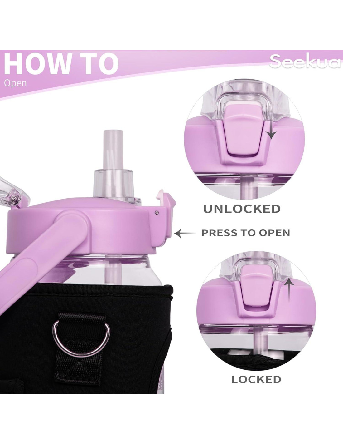- Pajilla de Grado Alimenticio - La botella de agua con pajilla Seekua cuenta con marcadores de tiempo motivacionales que ayudan a rastrear tu ingesta diaria de agua. La pajilla removible te permite disfrutar de una bebida sin derrames.