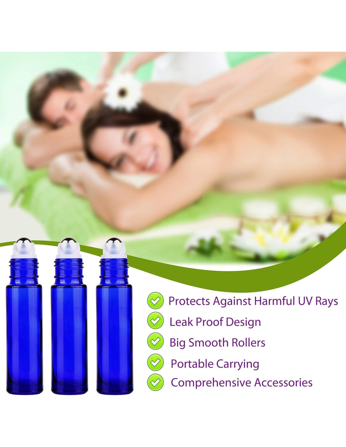 - Protección de Aceites Esenciales: La botella roller está hecha de vidrio grueso azul cobalto oscuro que protege tus aceites esenciales contra los dañinos rayos UV