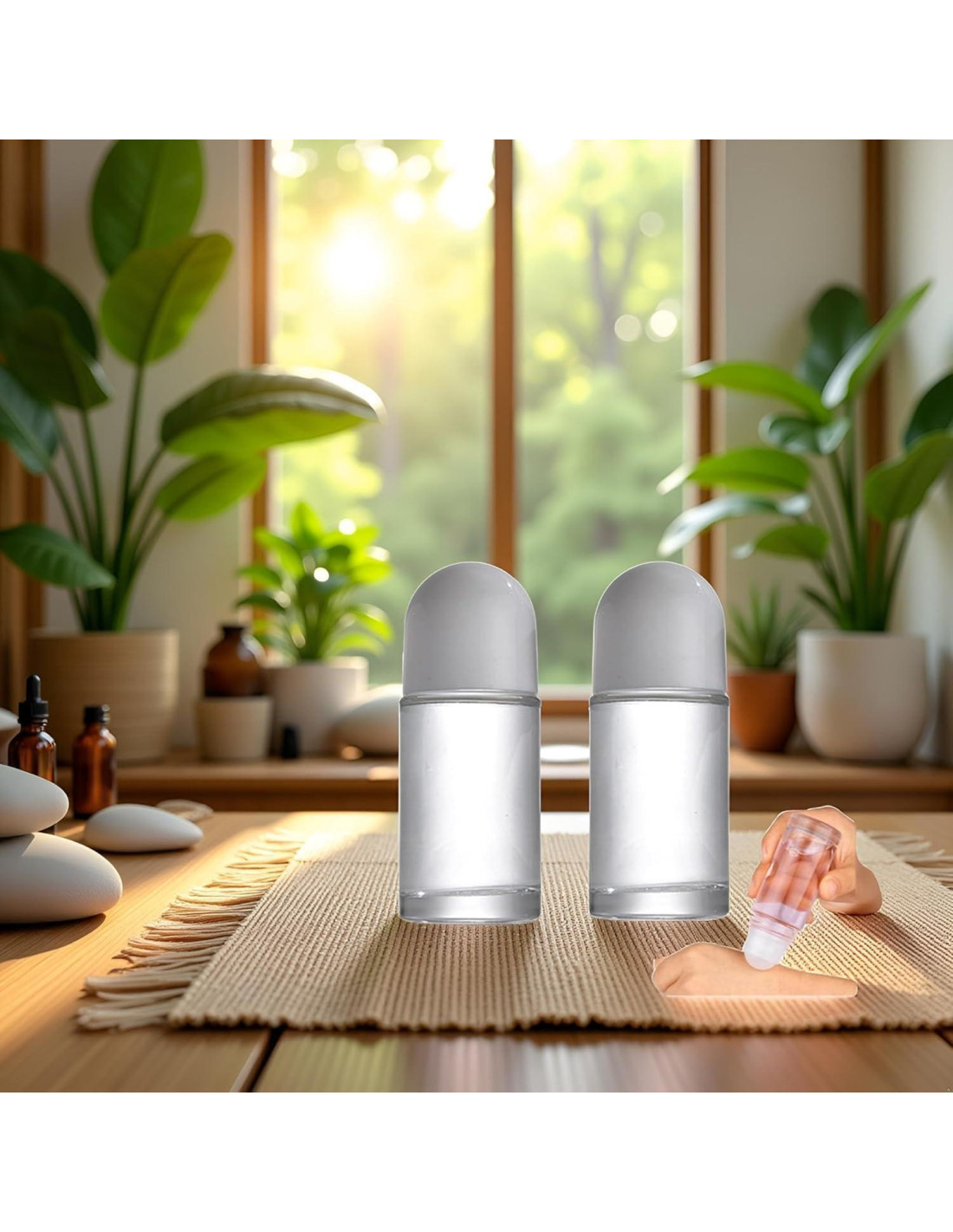 2 Pcs 50ML Botellas de Rodillo de Vidrio Vacías con Bola de Rodillo de Plástico, Contenedores de Botellas Roll On a Prueba de Fugas con Tapa Blanca para Aceite Esencial Contenedores Recargables