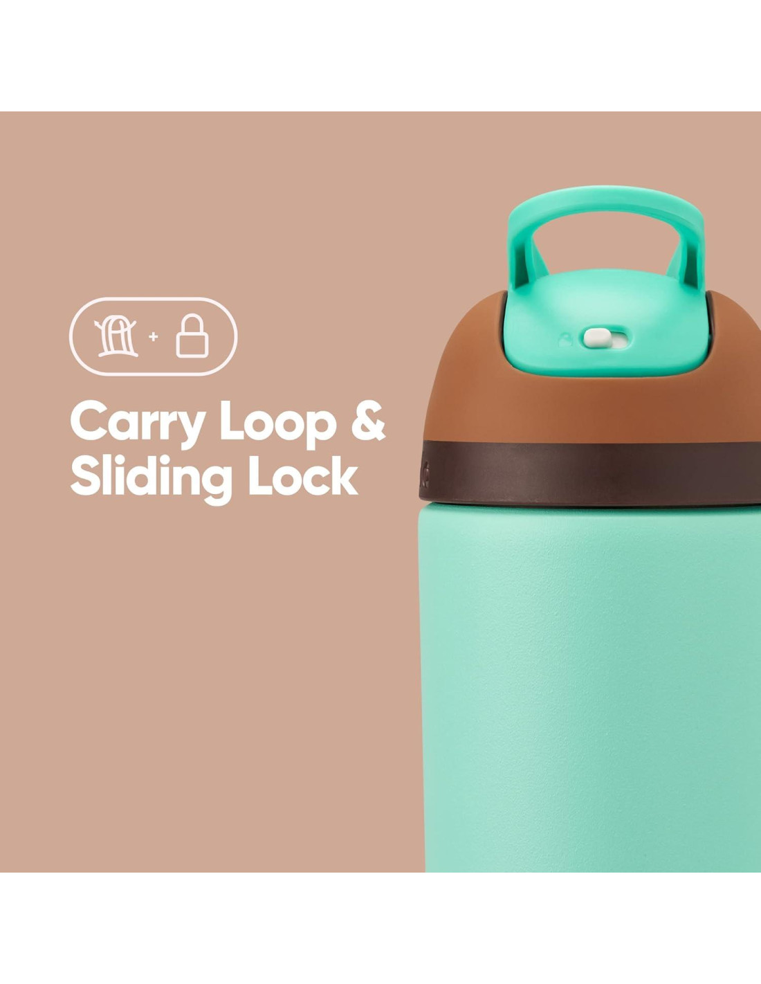 - Botella de agua de acero inoxidable aislada de 14 onzas (414 ml) con tapa flip, que cuenta con pajilla, tapa de bloqueo y operación simple con una sola mano para niños y pequeños en la escuela o en una aventura