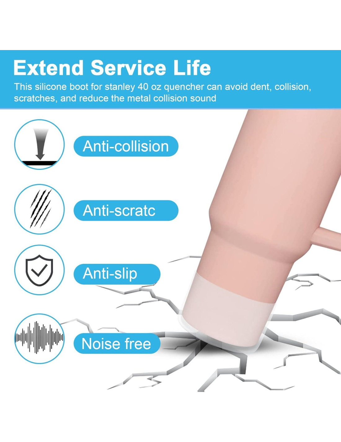 - Material Premium: Hecho de silicona suave y elástica, reutilizable y duradera, perfecto protector de fondo de taza de silicona para stanley cup 40 oz con asa, no se caerá fácilmente.