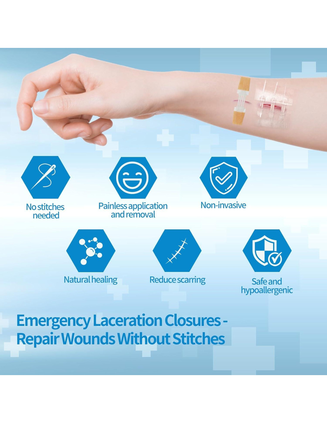 - Grado médico y seguro. Cierre aprobado por la FDA. Este kit de cierre de heridas está hecho de materiales hipoalergénicos y adhesión profesional, todos los instrumentos están empaquetados individualmente, proporcionando un cierre seguro que es 8 veces más fuerte que los puntos tradicionales. Ideal para niños, ancianos y adultos.