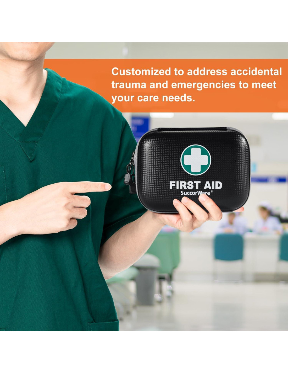 - 150 ESENCIALES DE EMERGENCIA PROFESIONALES - Nuestro mini kit de primeros auxilios contiene 150 suministros médicos cuidadosamente seleccionados para tus necesidades básicas de atención, perfecto para mochilear, acampar, hacer senderismo y aventuras al aire libre.