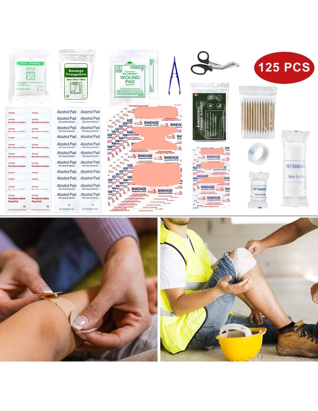 - Kit Médico Todo Listo - La bolsa del kit médico proporciona 125 piezas de suministros médicos para vendar heridas básicas, incluye vendajes de pbt, almohadillas para heridas, vendajes triangulares, hisopos de algodón, pinzas, tijeras y TORNIQUETE, ESPALDERA y vendaje comprimido rápido. Todos los artículos se pueden guardar en la bolsa de Oxford.