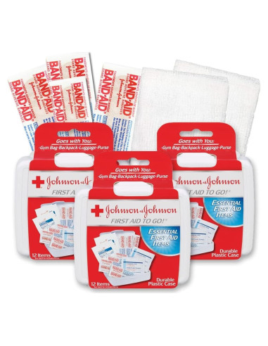 - Kit de Primeros Auxilios Johnson & Johnson para Llevar -- Paquete de 3 Kits. Incluye Artículos Esenciales de Primeros Auxilios.
