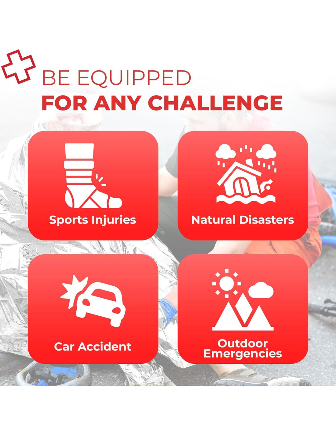- GASA, VENDAJES Y VENDAS DE TRAUMA: Incluye una variedad de almohadillas de gasa de alta absorción, rollos de gasa y vendajes de trauma adecuados para el empaquetado de heridas, estabilización de extremidades y cuidados postquirúrgicos. Todos los artículos son estériles, empaquetados individualmente y libres de látex, adecuados para pieles sensibles y uso médico en atención de emergencia o de campo.
