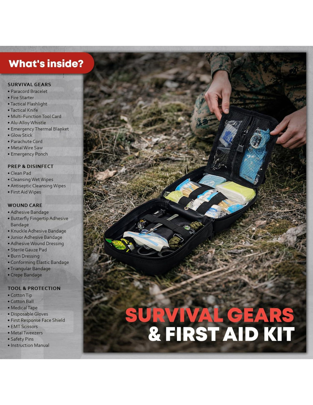 - Aplica a Múltiples Escenarios: Comparado con kits de primeros auxilios ordinarios, nuestro equipo de supervivencia contiene no solo herramientas básicas de tratamiento de lesiones, sino también una variedad de Kit de Emergencia. Perfecto para camping, mochileo, exploración, senderismo, coche, barco, bicicleta, motocicleta, lugar de trabajo, viajar, disparar, cazar, acampar, senderismo, pescar, navegar, deportes al aire libre, naturaleza y otras aventuras al aire libre.