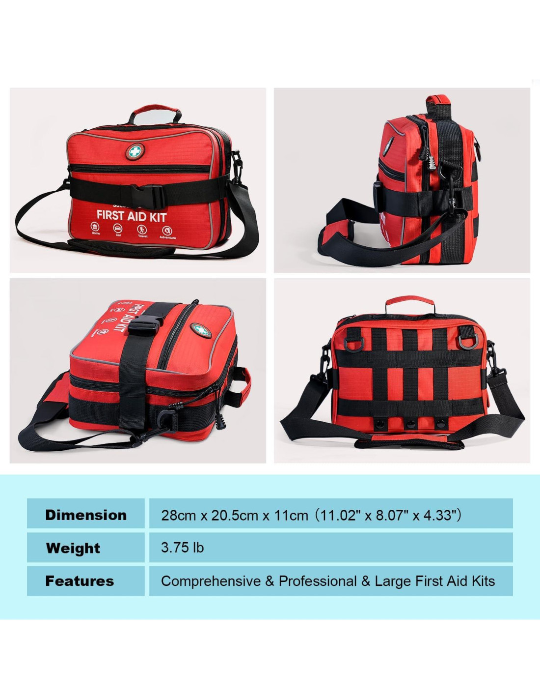 - PORTÁTIL - Los kits de primeros auxilios están equipados con el sistema MOLLE y son compatibles con correas de hombro, mosquetones y más. Usar la correa de hombro libera tus manos para más flexibilidad al tratar heridas. El kit de primeros auxilios de viaje tiene asas de transporte en la parte superior y los lados para fácil sujeción a equipaje, coche o camión, facilitando su transporte a una variedad de actividades al aire libre.