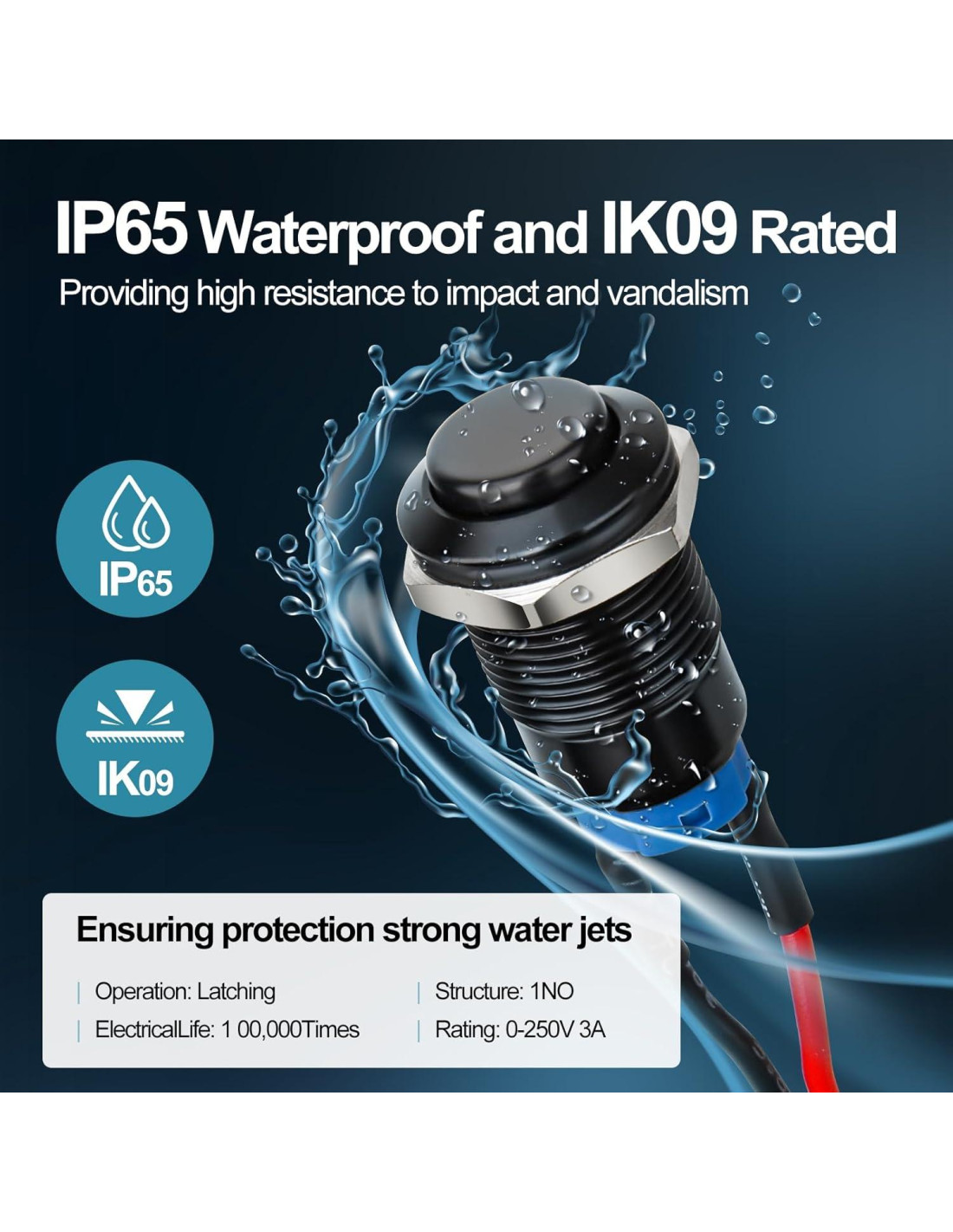 - Mecanismo de interruptor único y larga vida útil: Este interruptor de botón pulsador con enclavamiento presenta un modo de operación conveniente de "presionar para encender, presionar nuevamente para apagar". Su vida eléctrica es de hasta 100,000 veces, y la vida mecánica puede alcanzar 500,000 ciclos. Es duradero y proporciona un control de interruptor estable y a largo plazo para varios dispositivos.