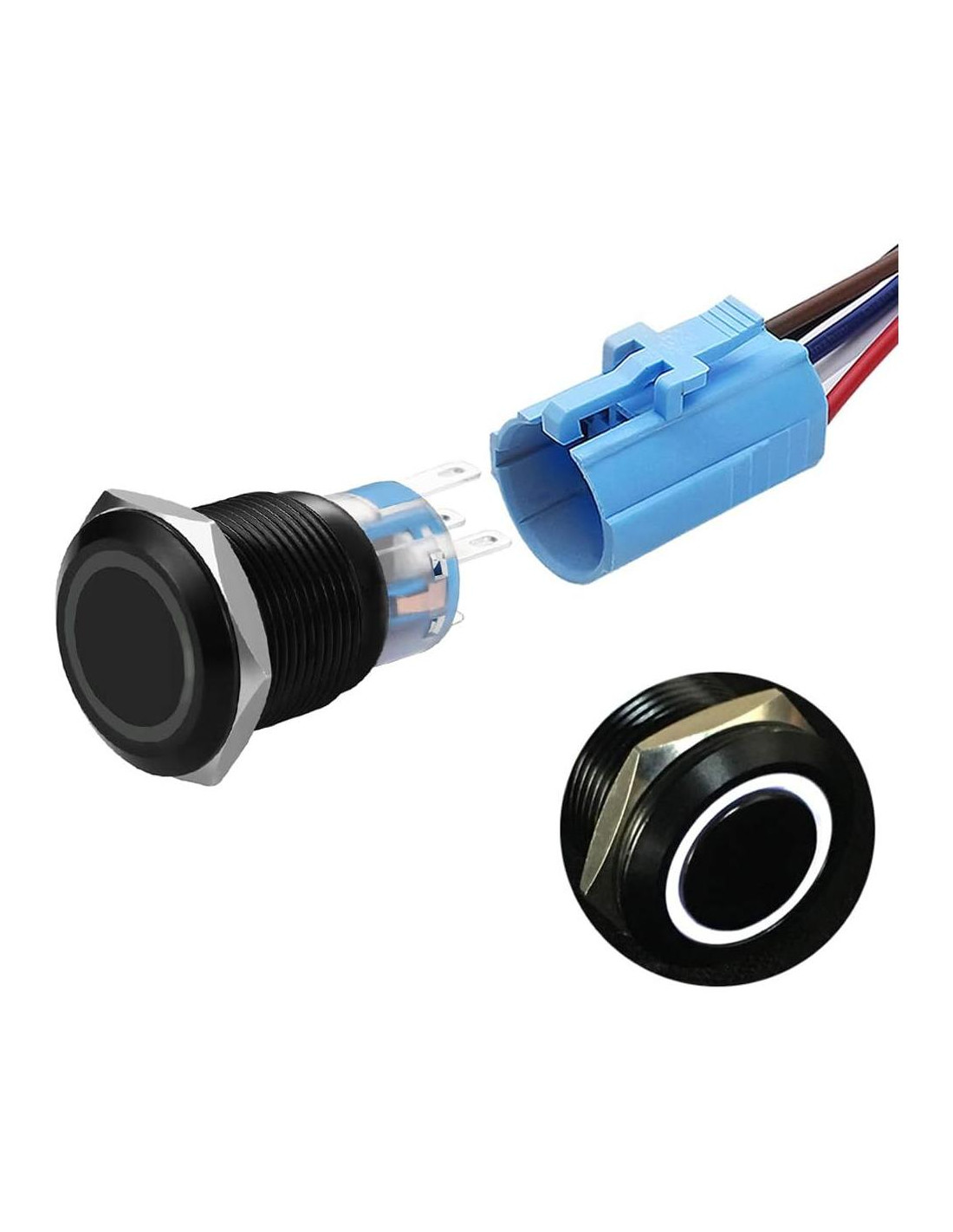 Especificaciones: Diámetro de la cabeza: 7/8" (22mm) Tamaño del orificio de montaje: 3/4" (19mm) Combinación del interruptor: 1NO1NC Tipos de operación: Interruptor de retención Calificación del interruptor: 5A/250V Calificación del LED: 15mA, AC/DC 12V Forma de la cabeza: Plana y Anillo Material de la carcasa: Aleación de zinc y aluminio Nivel de protección: IP65/IP67/IK10 El paquete incluye: 1* Interruptor de Botón Pulsador 1* Conector de Cable Interruptor de retención utilizado para: Los interruptores de retención se utilizan con mayor frecuencia para varios equipos eléctricos adicionales, dentro y fuera del automóvil motocicleta (como luces críticas, lámpara de chasis, luces antiniebla, luz de cúpula, etc.)