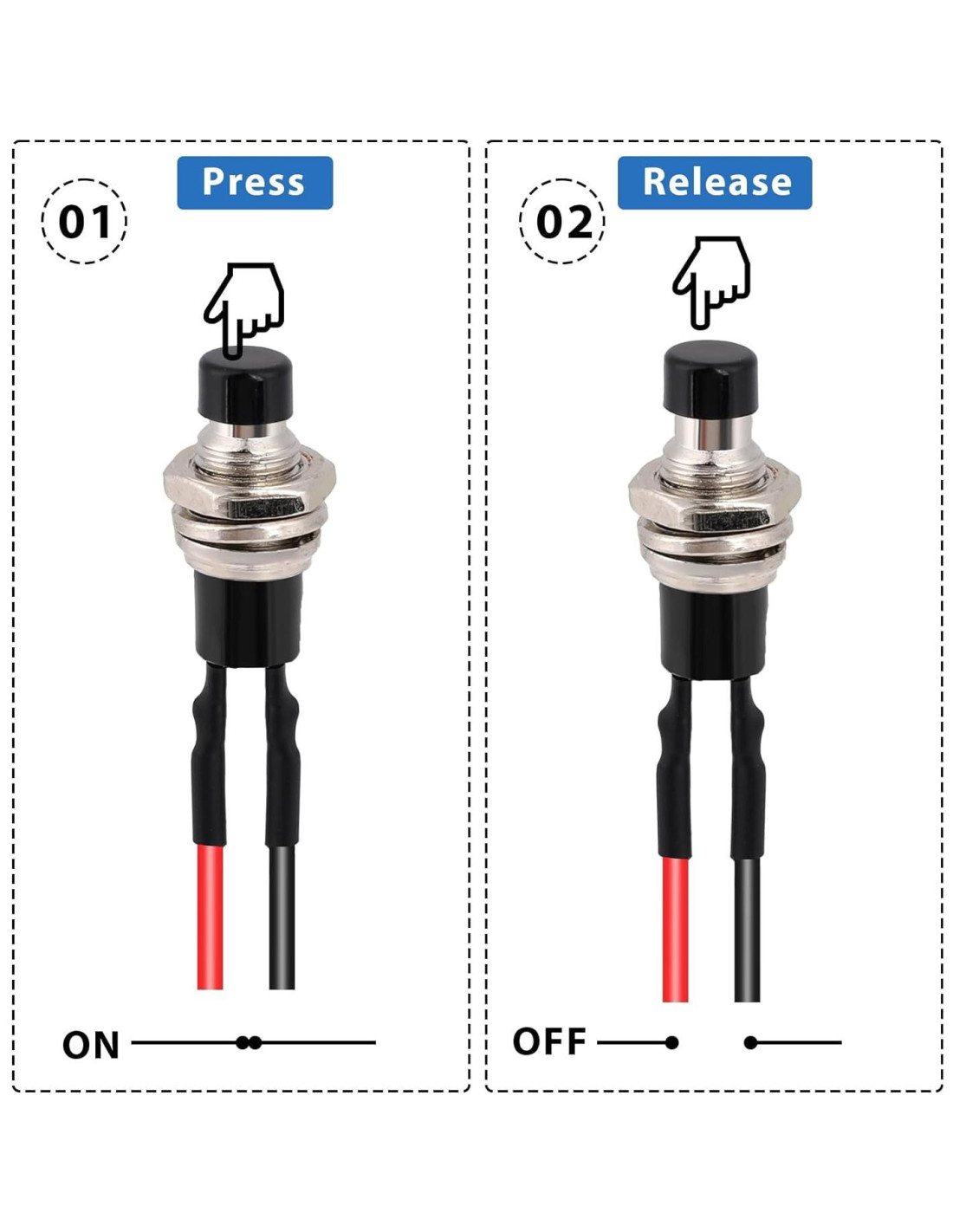 - Fácil Instalación: Este interruptor de botón pulsador momentáneo adopta un diseño preconectado, lo que facilita la instalación y elimina la molestia de soldar, ahorrándote tiempo.