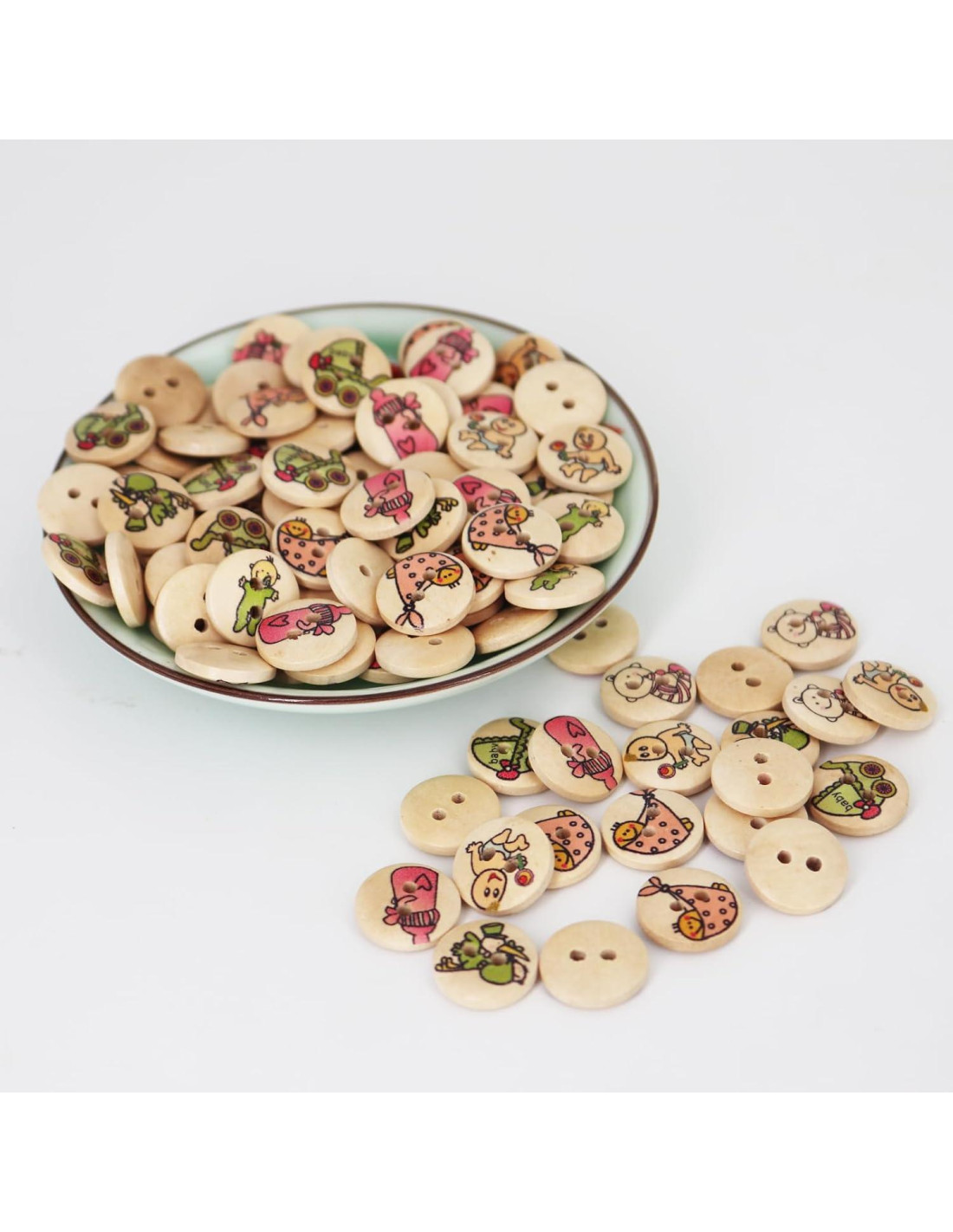 - [Paquete] Caja de almacenamiento incluida con diferentes patrones de botones hechos a mano de aproximadamente 15mm 100pcs botones para coser con 2 agujeros. (Como se muestra en la imagen). Estilo de moda lindo. Perfecto para DIY.