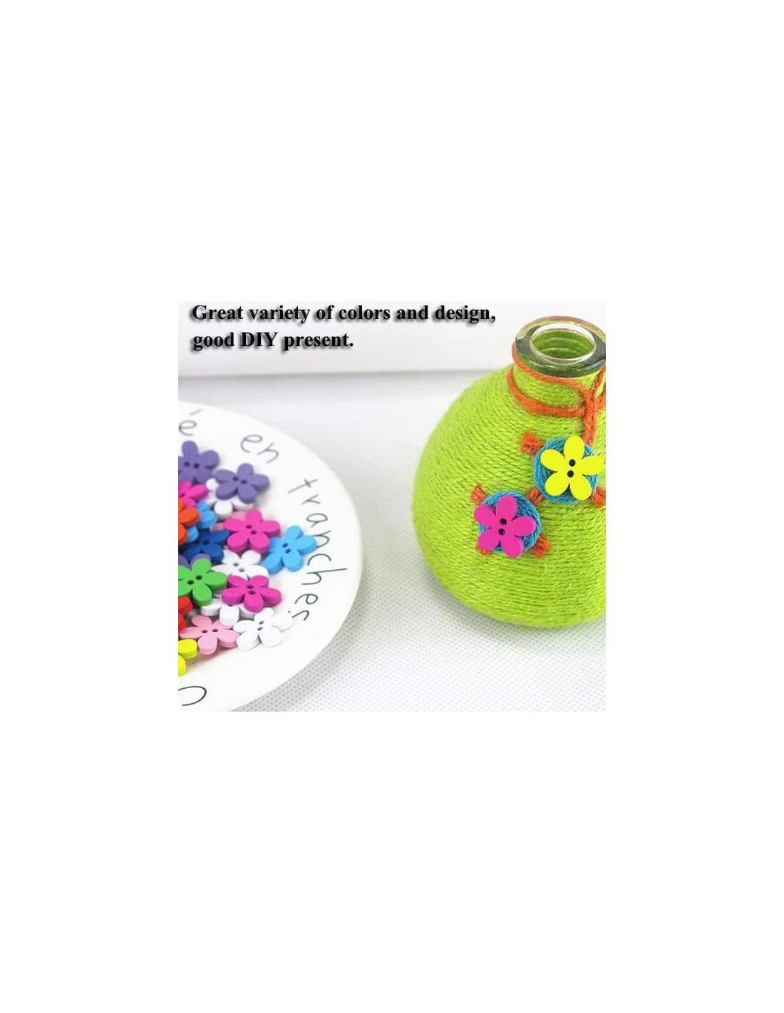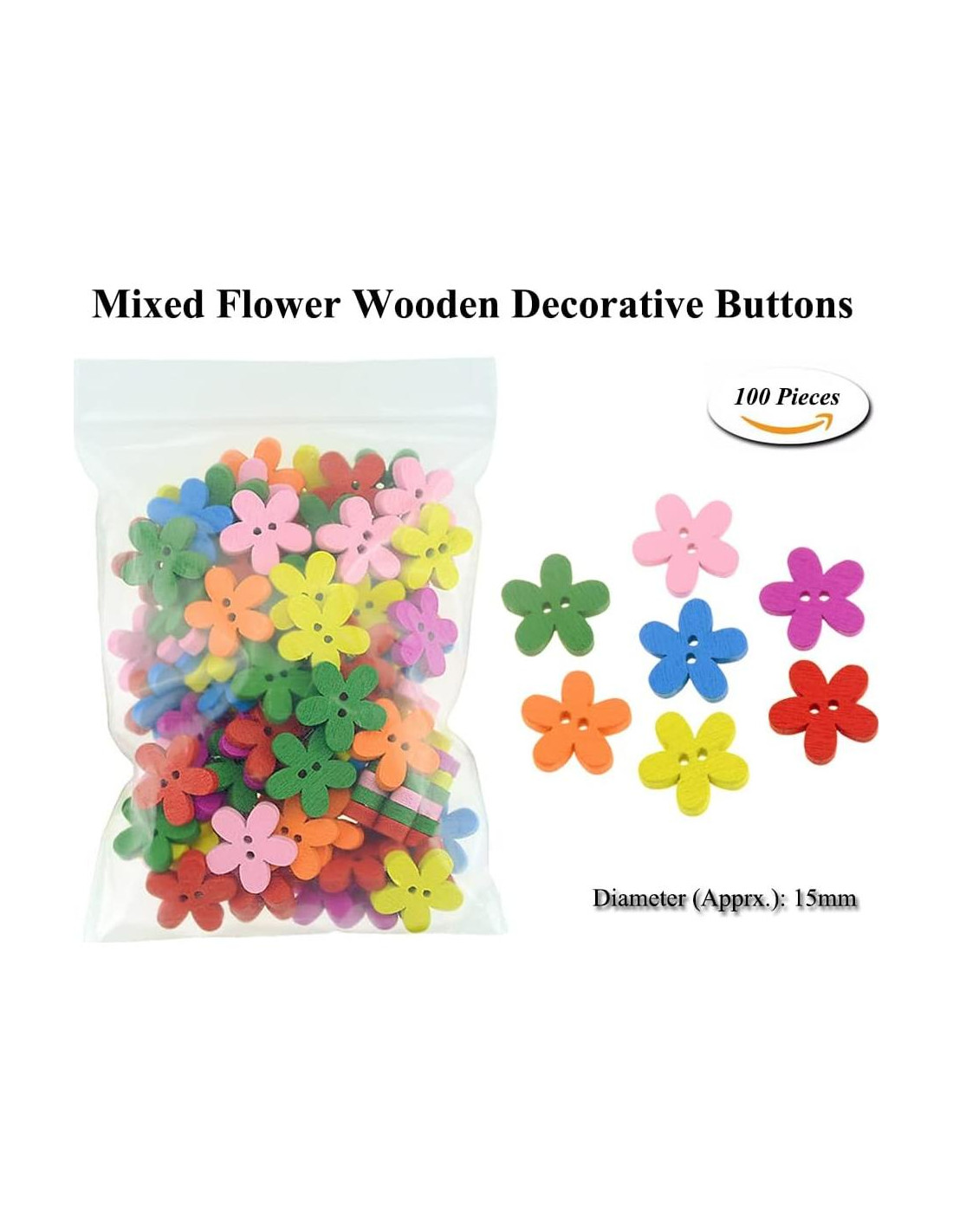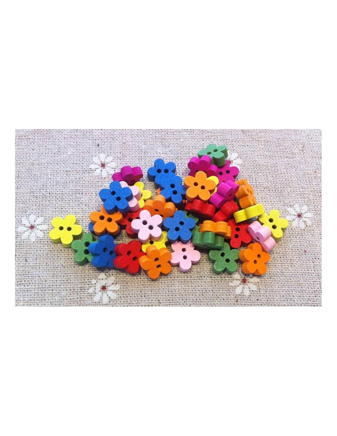 - Material: madera; tamaño (aprox.): 15mm; el paquete incluye: 100 Pcs botón de flor de madera (color mezclado).