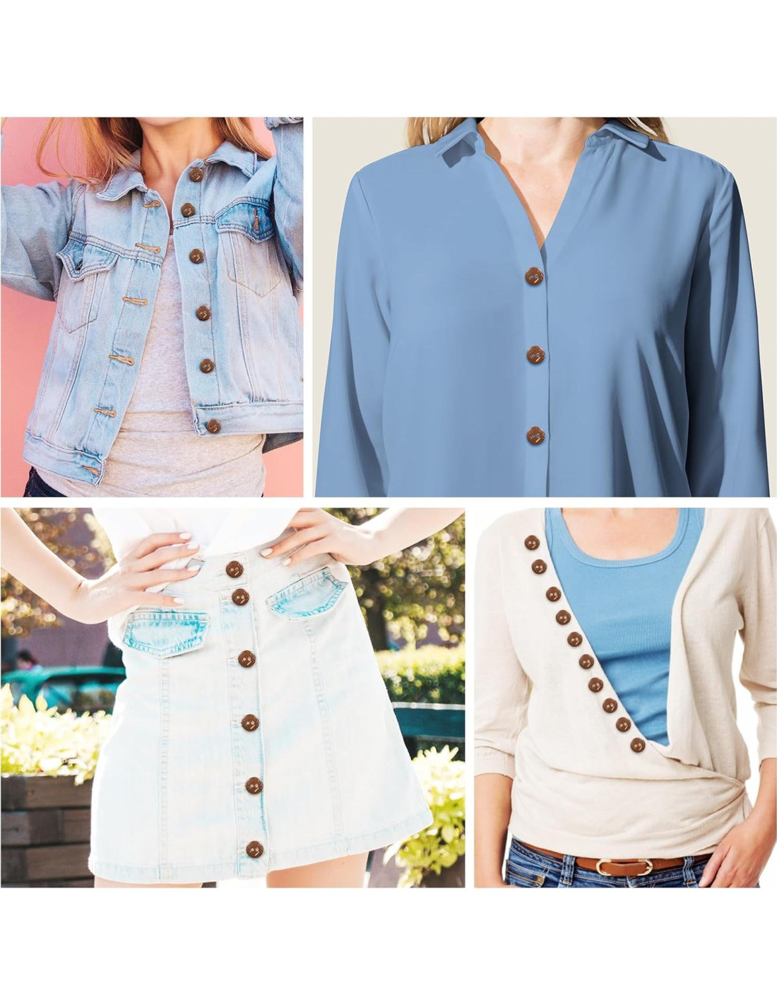 - Amplia Gama de Usos Estos botones de coco para coser tienen una amplia gama de escenarios de aplicación, ya sea que estés reemplazando botones rotos o diseñando camisas y diseños de ropa de bricolaje, los botones de madera también se pueden usar para hacer obras de arte hechas a mano, como clipart, tarjetas, regalos, varias manualidades y proyectos de costura como chaquetas, camisas, pantalones, pantalones cortos, cárdigans y faldas.