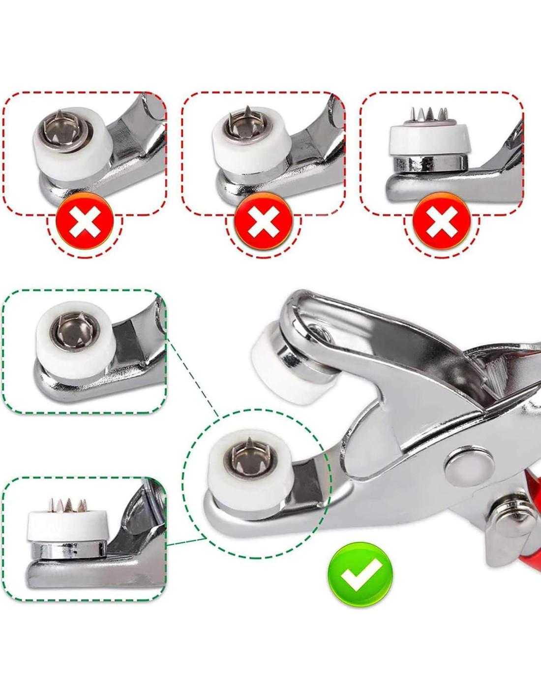 - El Alicate de Presión es Fácil de Usar, Perfecto para Montar el Cierre de Pua Hueca/Sólida de 9.5mm: El kit de botones a presión es adecuado para algodón, ropa de bebé, body, bodysuit, camisas, overoles, baberos, faldas, una capa de mezclilla, manualidades DIY y otros artículos de tela. Importante: No destinado para su uso con telas más gruesas o densas o seda. Por favor, verifica amablemente antes de comprar el kit de botones a presión