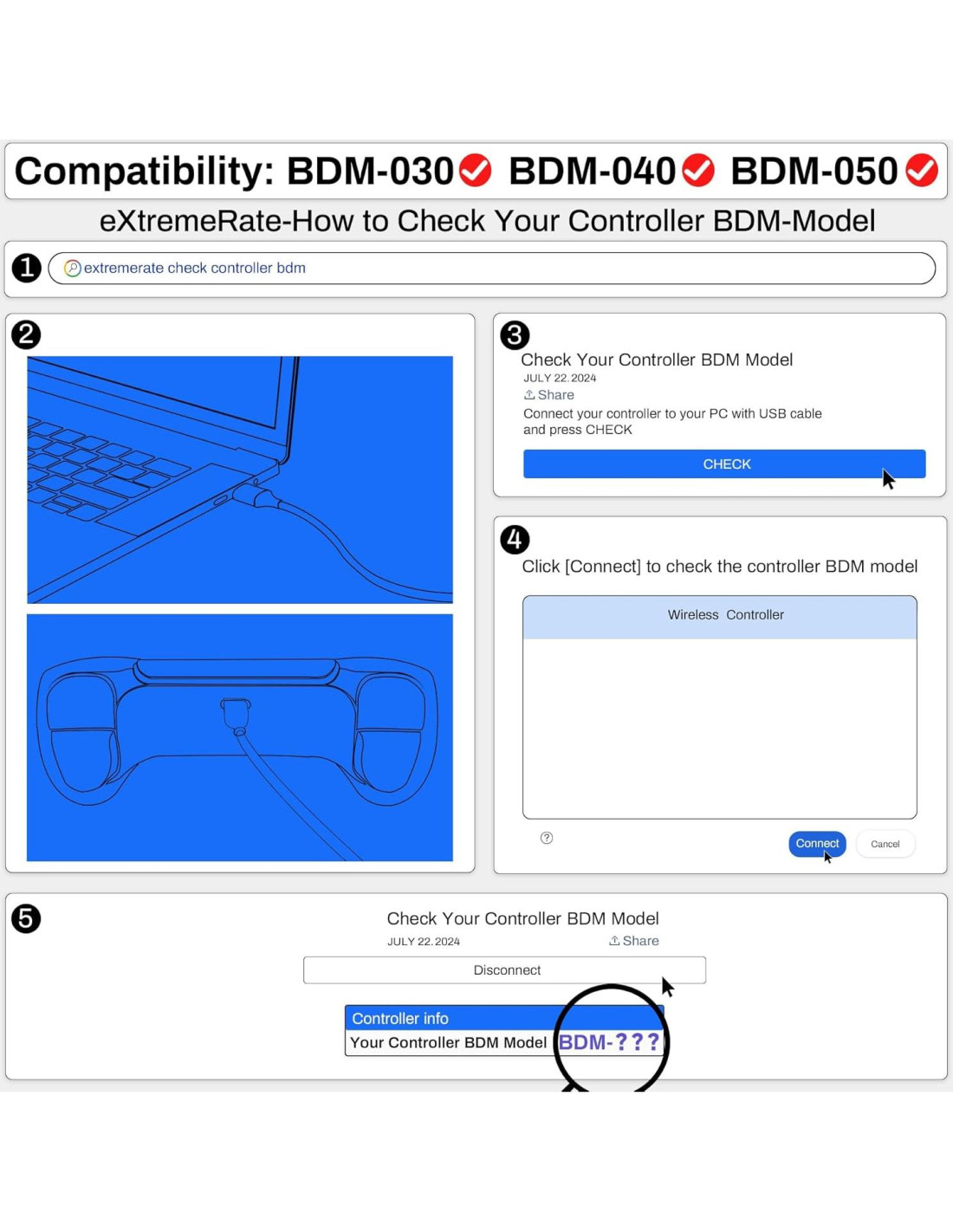 - Convierte tu controlador existente para PS5 en un controlador profesional de eSport de élite. Compatible con el controlador PS5 BDM-030 BDM-040 BDM-050, NO es compatible con BDM-010 BDM-020 y otros controladores; Verifica cómo reconocer tu modelo BDM en YouTube buscando "extremerate check bdm for ps5 controller" o "fiE4BWSlBRI" antes de comprar
