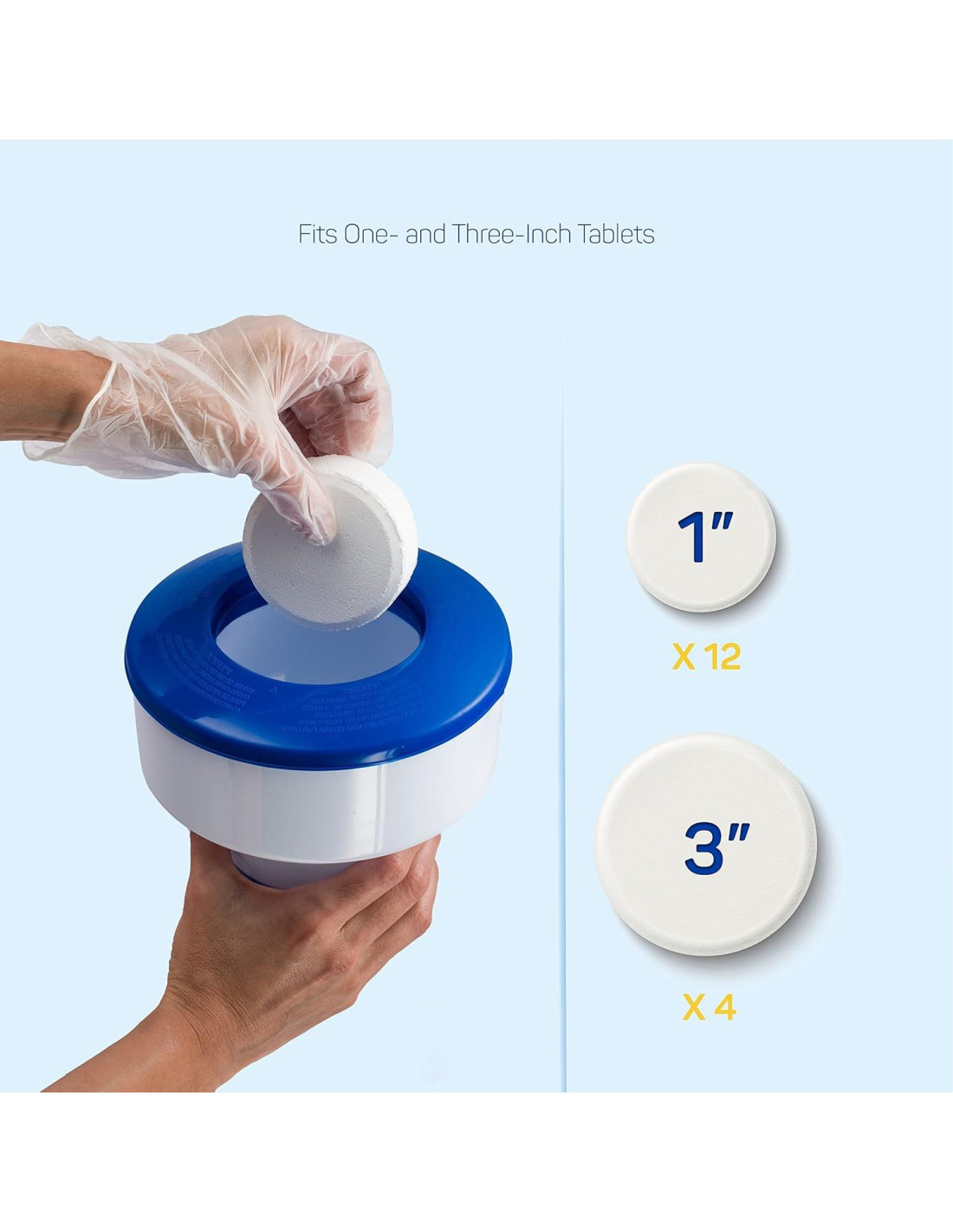- DISPENSADOR FLOTANTE: Incluye flotador de cloro que sostiene hasta tres tabletas de cloro/bromuro de 3". A diferencia de otras marcas, flota en la parte superior del agua sin hundirse.